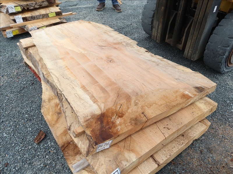 3" X 64" 5-YEAR AIR DRY LIVE EDGE CURLY MAPLE SLAB (LARGE END 40", SMALL END 28")
