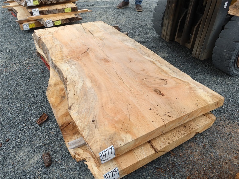 3" X 72" 5-YEAR AIR DRY LIVE EDGE CURLY MAPLE SLAB (LARGE END 38", SMALL END 35")
