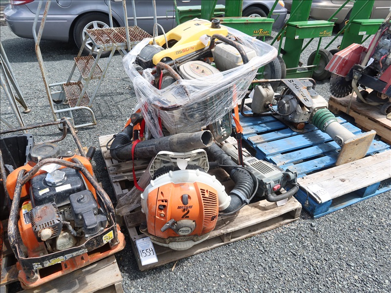 LOT, (2) WACKER WALK-BEHIND GAS POWERED JUMPING JACKS, (2) STIHL BR600 GAS POWERED BACKPACK BLOWERS & (1) XTREME POWER ELECTRIC JACK HAMMERS ON THIS PALLET (NEEDS REPAIR)