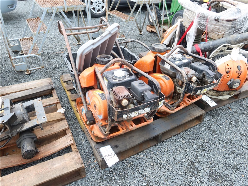 LOT, (2) MIKASA MVC-88VTHW WALK-BEHIND GAS POWERED PLATE COMPACTORS & (1) PNEUMATIC JACK HAMMER W/ASSORTED BITS ON THIS PALLET