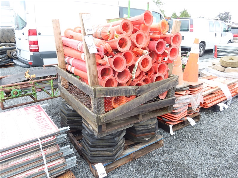 LOT, ASSORTED REFLECTIVE CANDLESTICK CONES W/BASES IN THIS BIN (MUST TAKE BIN)