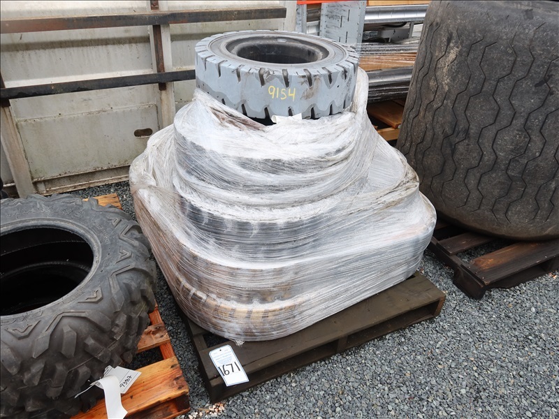LOT, ASSORTED 7.00-12 SOLIDEAL FORKLIFT TIRES & WHEELS ON THIS PALLET