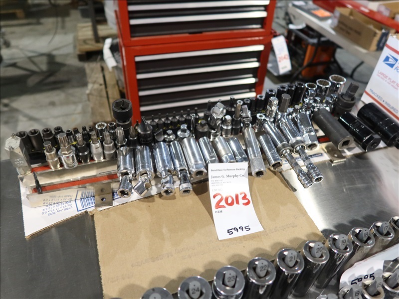 LOT, ASSORTED 1/4", 3/8" & 1/2" DRIVE SOCKETS & BITS W/(3) MAGNETIC HOLDERS