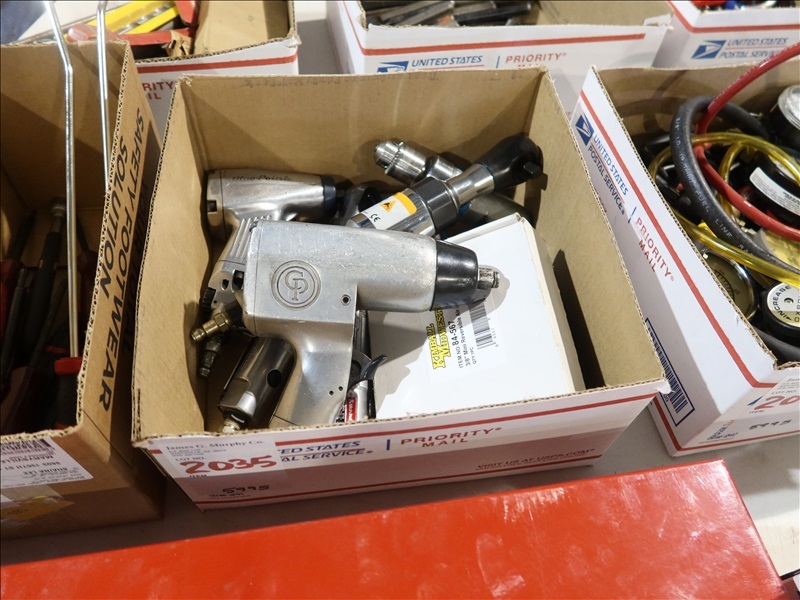 LOT, ASSORTED PNEUMATIC TOOLS TO INCLUDE: BLUE POINT 3/8" IMPACT, SNAP-ON FAR72B 3/8" RATCHET, CP 1/2" IMPACT & MORE