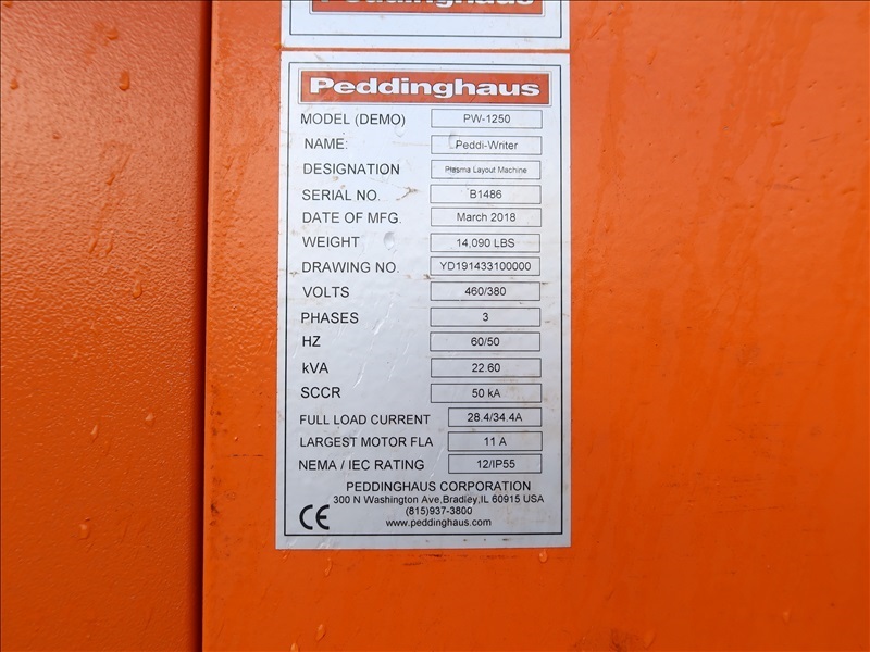 AUTOMATIC CNC PLASMA LAYOUT MARKING MACHINE PEDDI-WRITER, 460V, 3 PHASE, PUMP MOTOR, SCREEN & CONTROL ON THIS PALLET (MFG DATE MARCH 2018, APPROX WEIGHT 14,000 LBS)