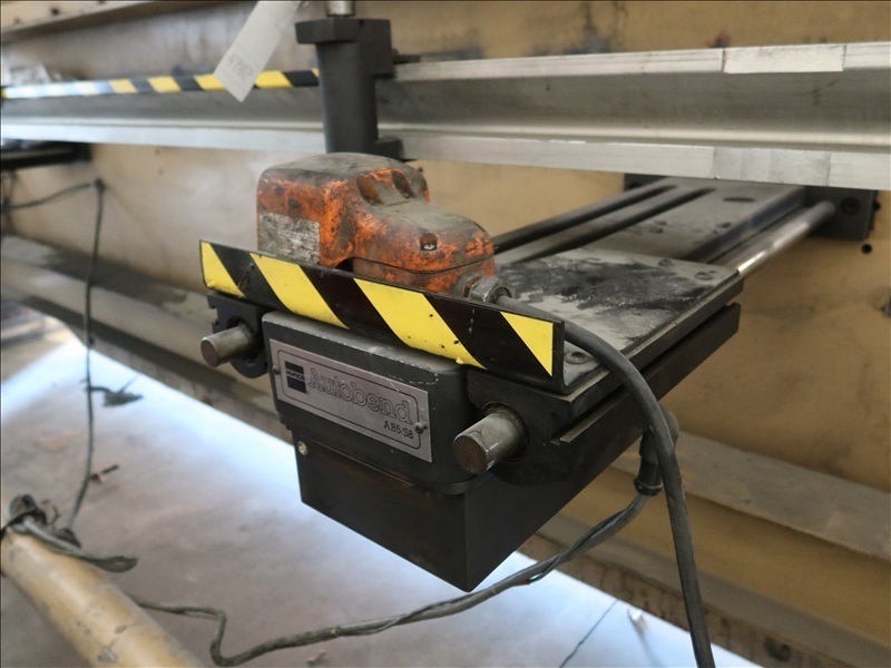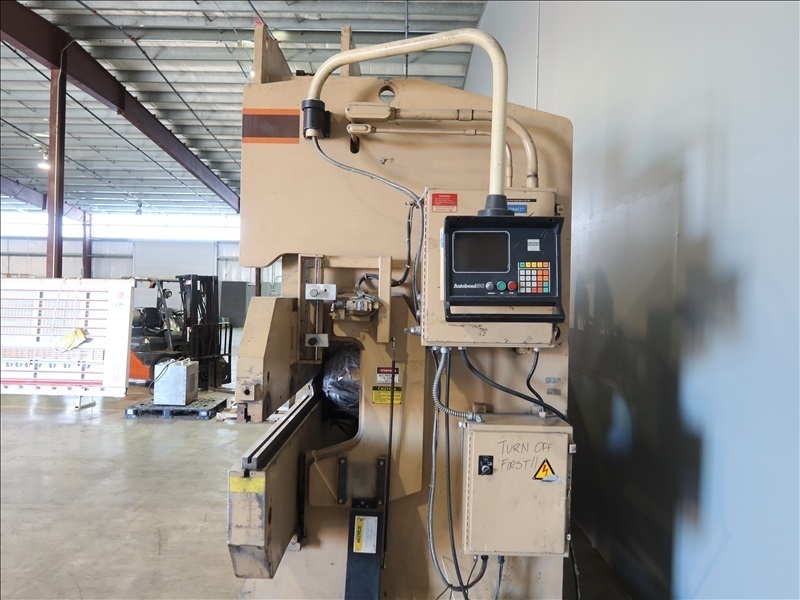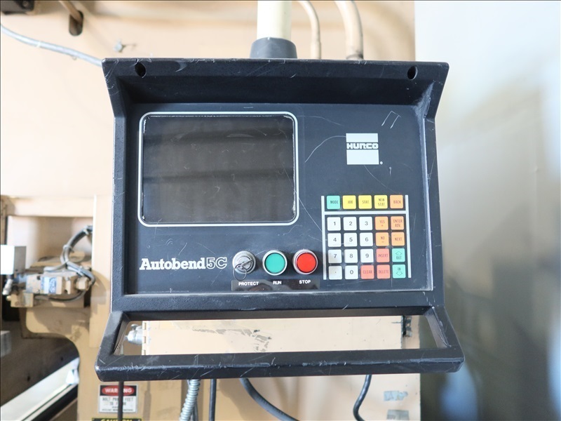 21' HYDRAULIC PRESS BRAKE, 100-TON W/12' DIE & HURCO AUTOBEND AB5/S8 BACK GAUGE, AUTOBEND 5C CONTROLS W/FOOT PEDALS, 480V, 3 PHASE(**NO REMOVAL BEFORE MONDAY, JUNE 24TH, BUYER RESPONSIBLE FOR RIGGING, WEIGHS APPROX 50,000 LBS**)