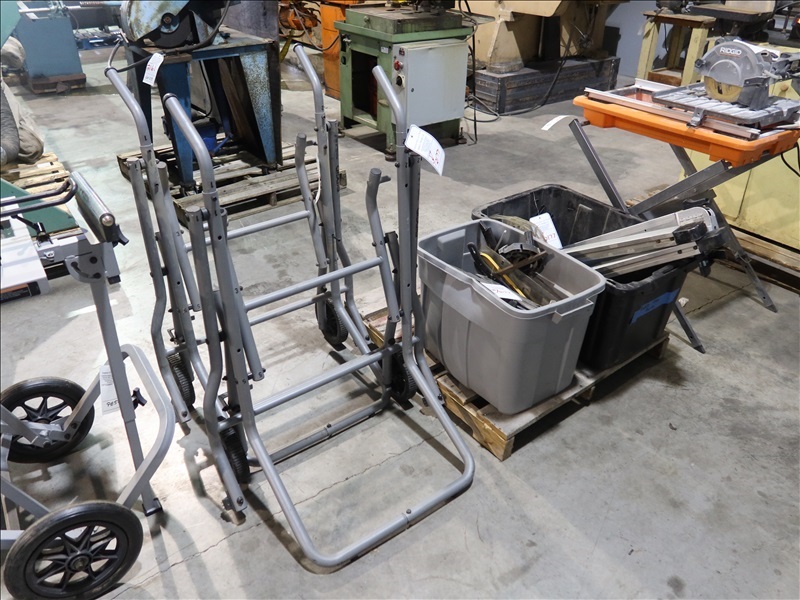LOT, (2) RIDGID MITER SAW STANDS & ASSORTED TABLE SAW PARTS