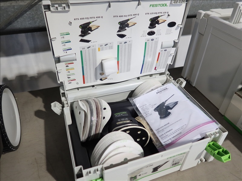LOT, FESTOOL ETS125 EQ-PLUS USA PALM SANDER W/EXTRA SANDING DISC & CARRY CASE, 120V