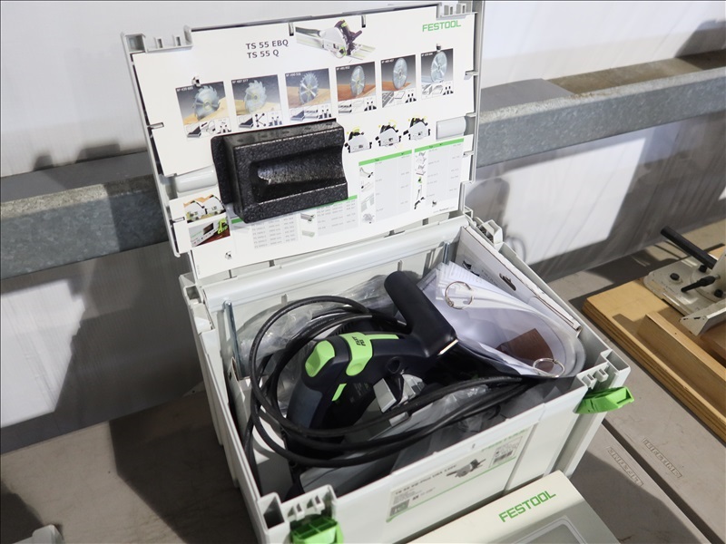 LOT, FESTOOL TS55 EQ-PLUS USA PLUNGE CUT SAW W/EXTRA BLADES, CUTTING GUIDES & CARRY CASE