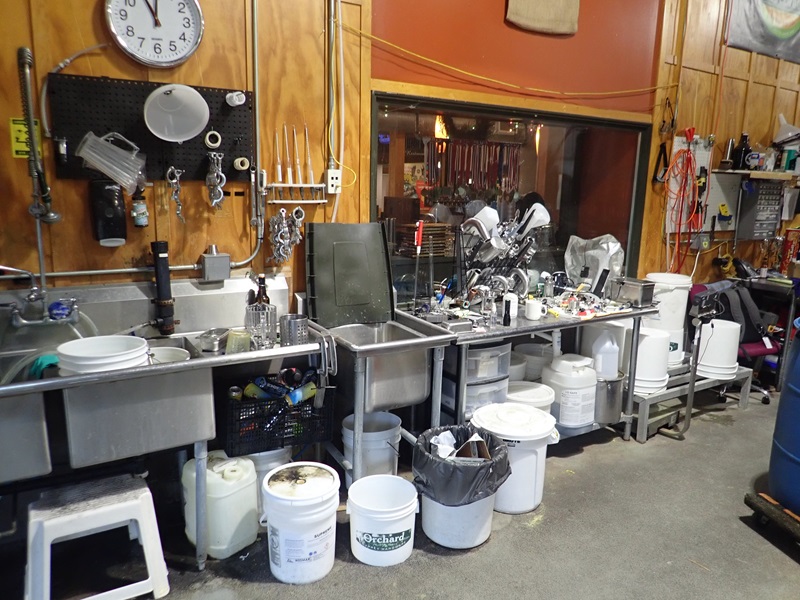 GROUP OF (2) S/S SINKS, S/S TABLES, PLATFORM SCALE, FITTINGS, CLAMPS & ASSORTED BREWING SUPPLIES