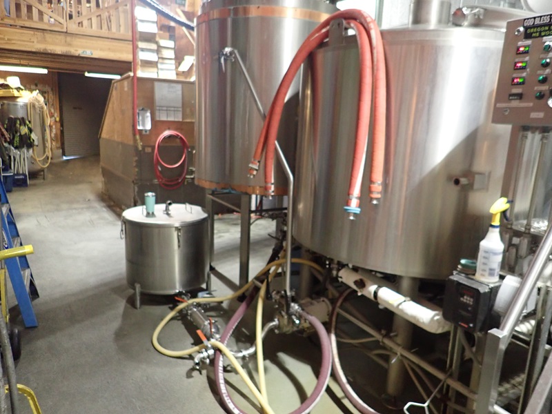 GROUP OF LADDERS, HAND TRUCKS, PALLET JACKS, HOSES & ASSORTED BREWING SUPPLIES