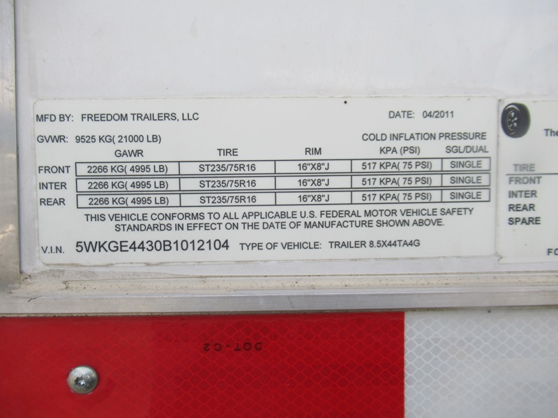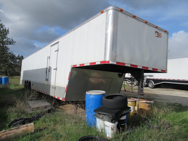 APPROX. 44' TRI-AXLE ENCLOSED GOOSENECK TRAILER, MAN DOOR, DOUBLE SWING END DOOR, 21,000 LB. CAP.