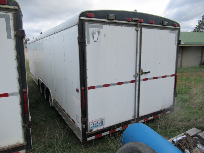APPROX. 28' TRI-AXLE ENCLOSED CARGO TRAILER, DOUBLE SWING END DOOR, MAN DOOR