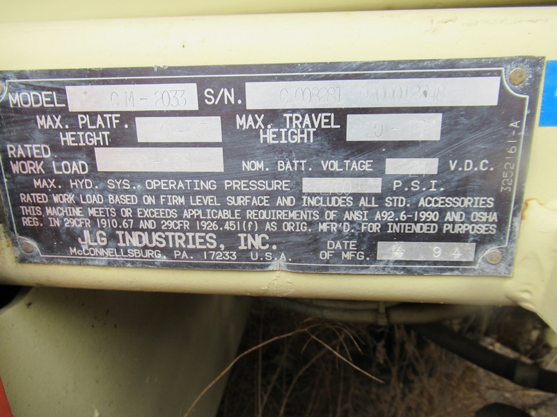 ELECTRIC SCISSOR LIFT, 20' PLATFORM HEIGHT, 750 LB. CAP.