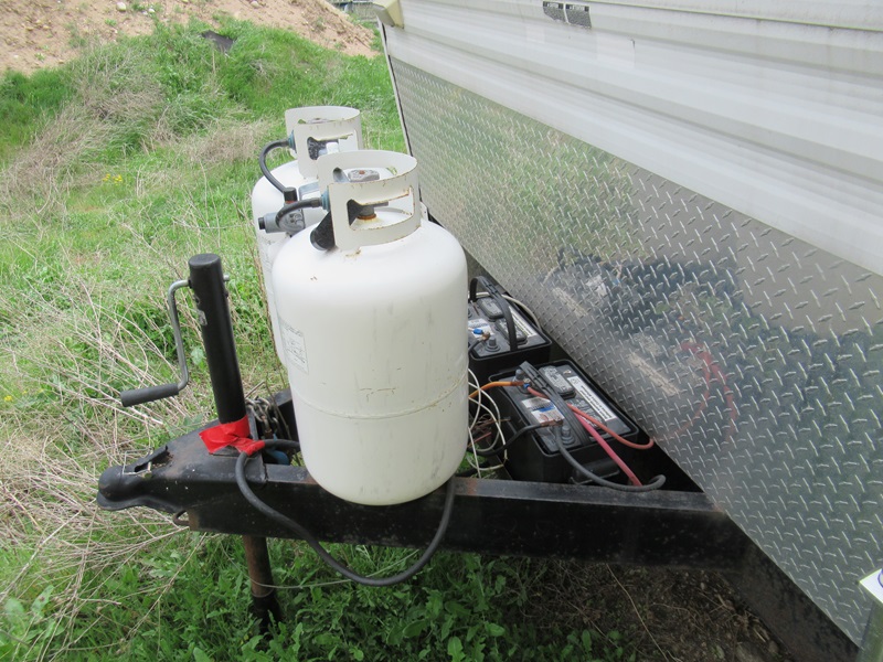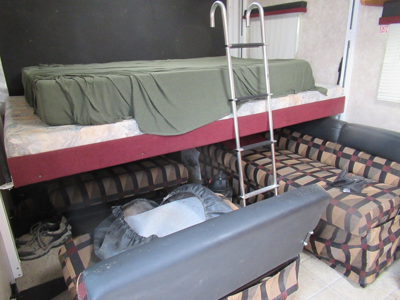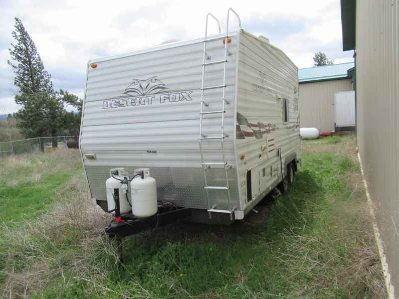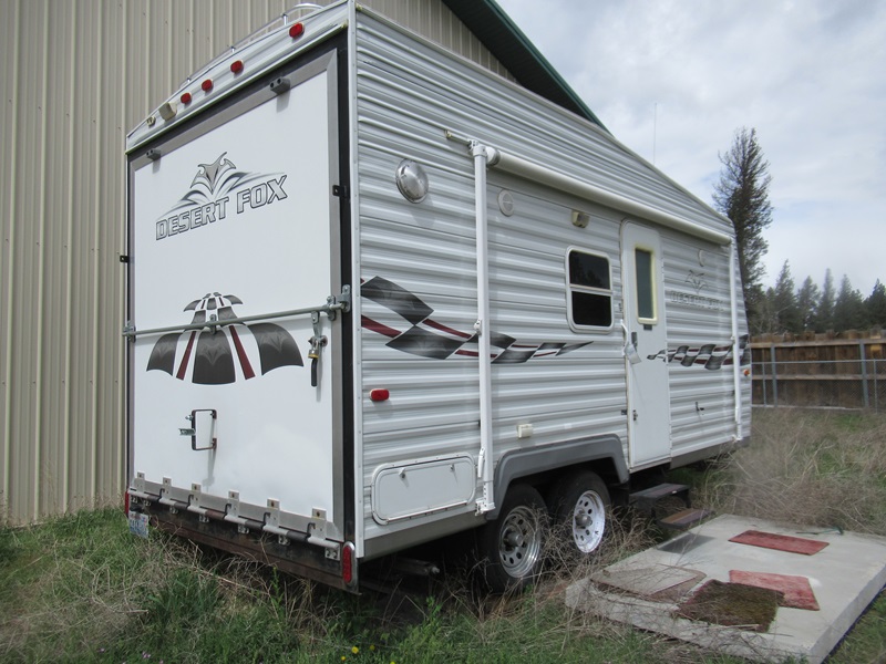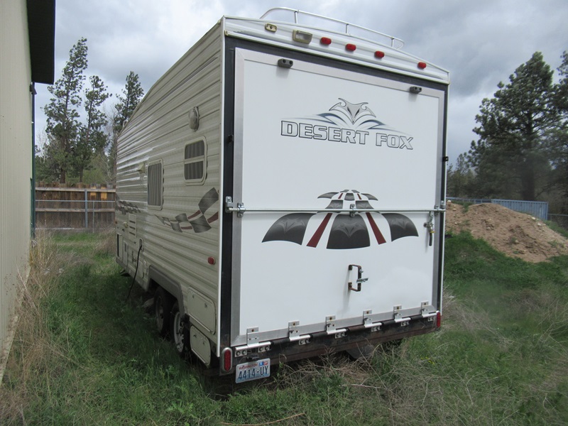17' TANDEM AXLE TOY HAULER, ONAN CAMP POWER 2800 ON BOARD GENERATOR, OUTDOOR SHOWER, DROP DOWN QUEEN BED, STOVE, MICROWAVE, REFRIGERATOR, SINK, TOILET, SHOWER, COLEMAN-MACH CLIMATE CONTROL