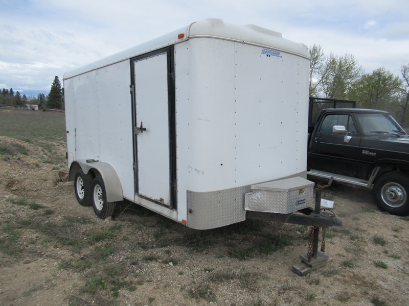 15' TANDEM AXLE ENCLOSED CARGO TRAILER, DOUBLE SWING END DOORS, MAN DOOR