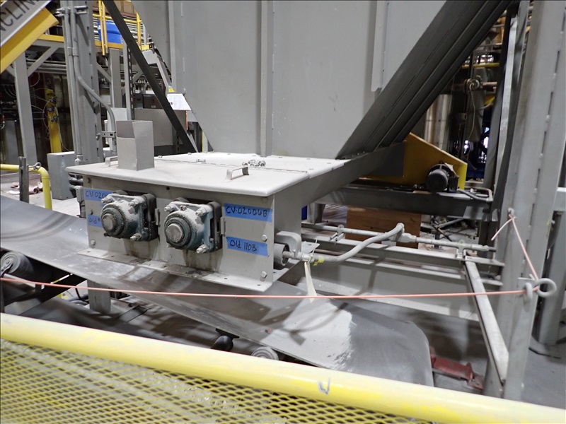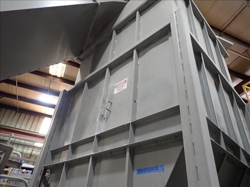 9'X9'X18' STEEL FEED HOPPER METERING BIN, TWIN SCREW DISCHARGE CONVEYOR, (2) 1.5 HP DRIVES, (2) SUMITOMO CYCLO 6000 REDUCERS