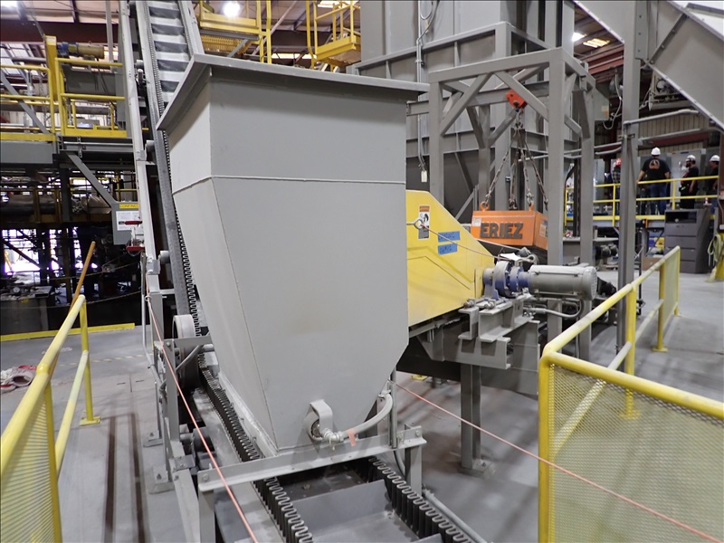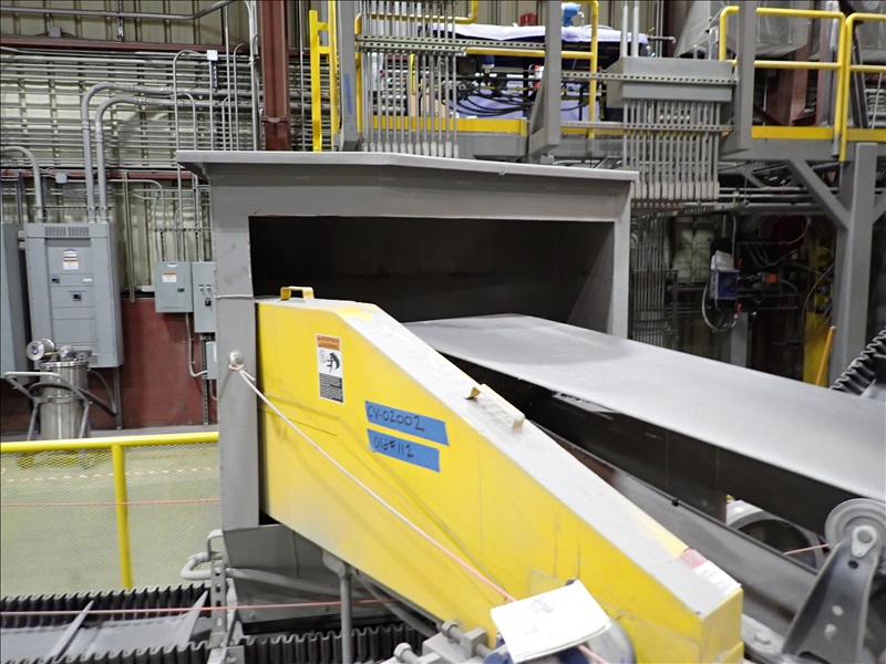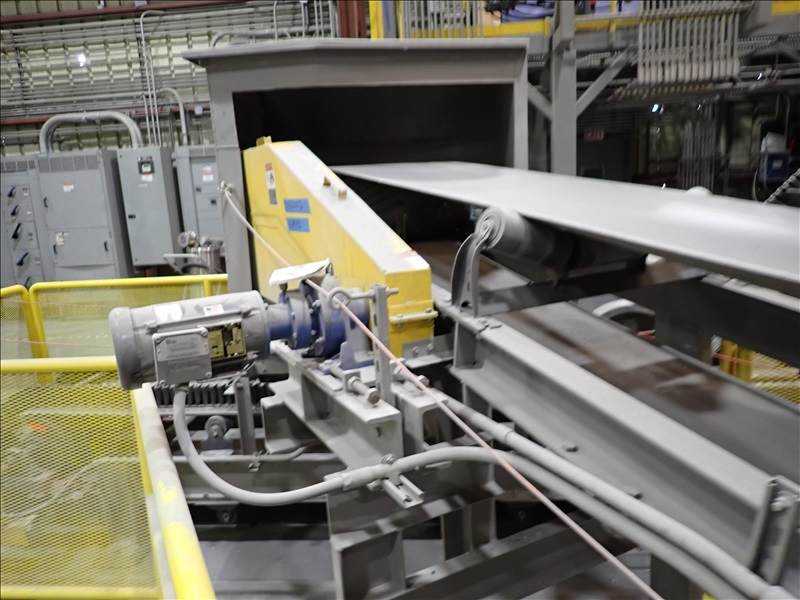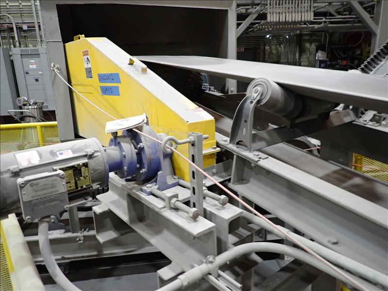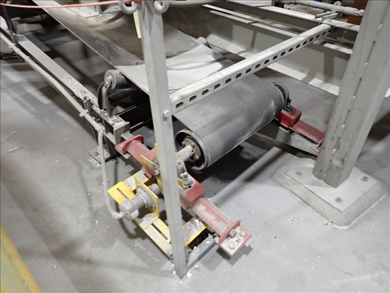 24"X25' INCLINE BELT TRANSFER CONVEYOR, STEEL SUPPORTS, .75 HP DRIVE, SUMITOMO CYCLO 6000 REDUCER, INTAKE HOPPER