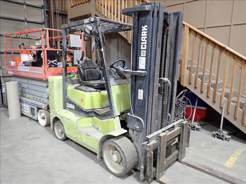 7,400 LB CAP. SOLID TIRED FORKLIFT, 188" 3-STAGE MAST, SIDE SHIFT, PROPANE, S/N:CGC470L-0063-GEF-9613 (NEEDS WORK)