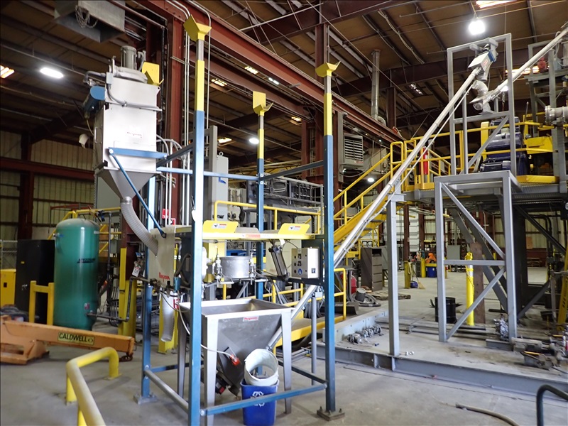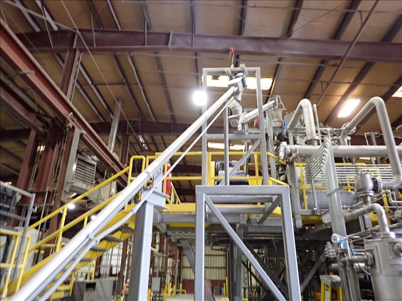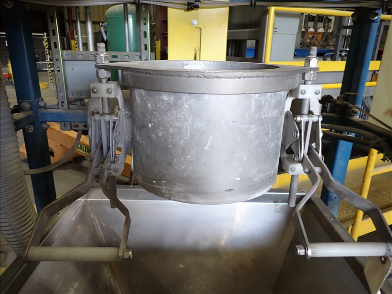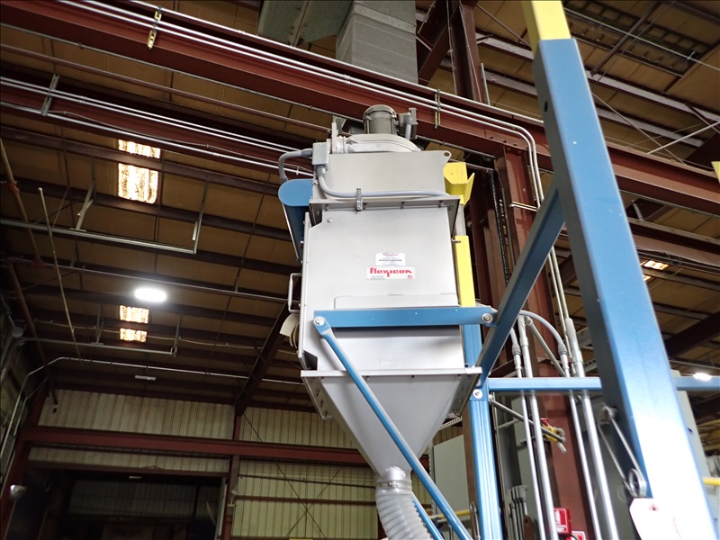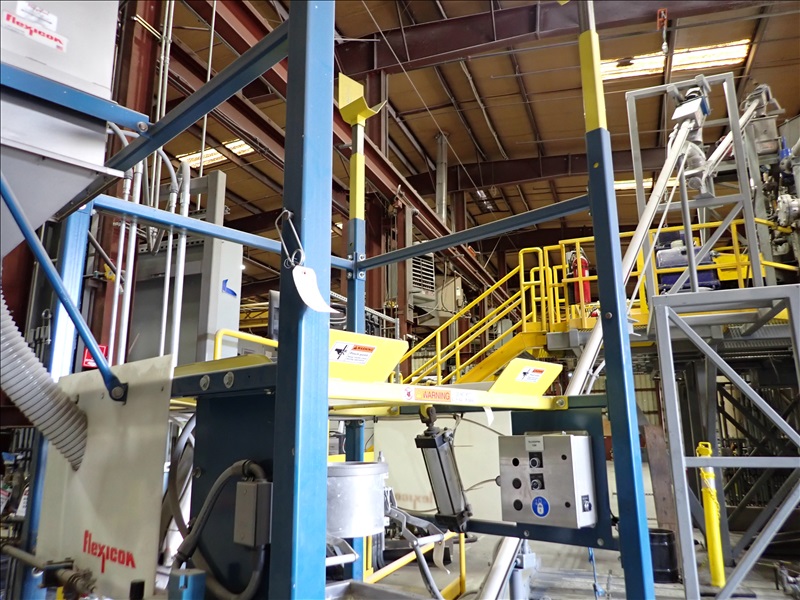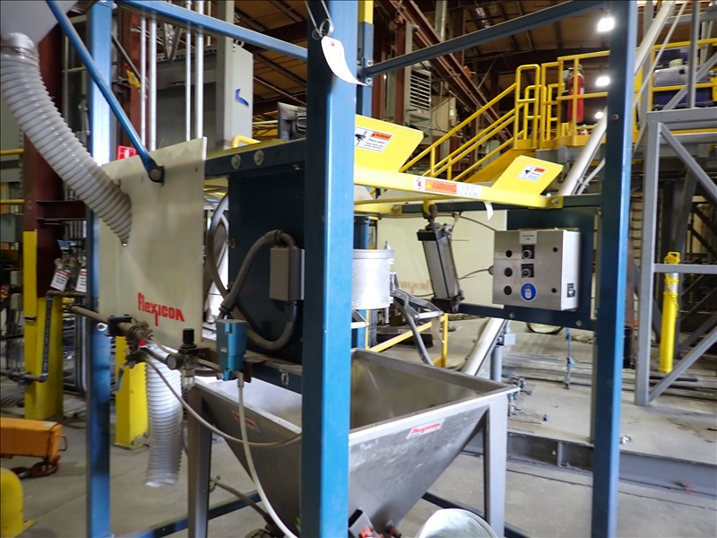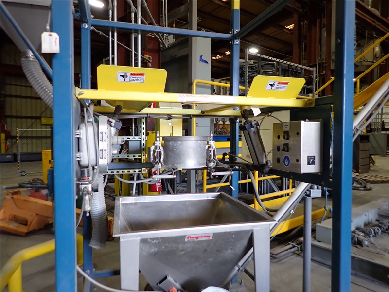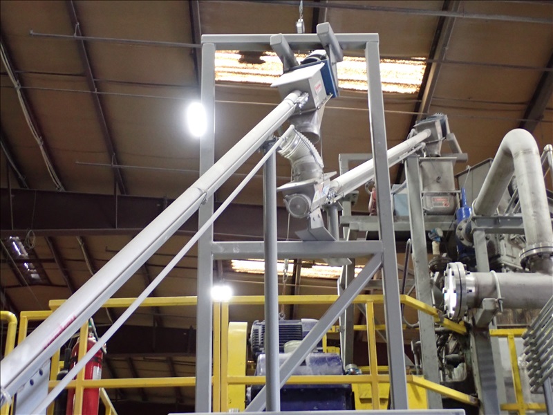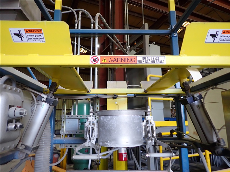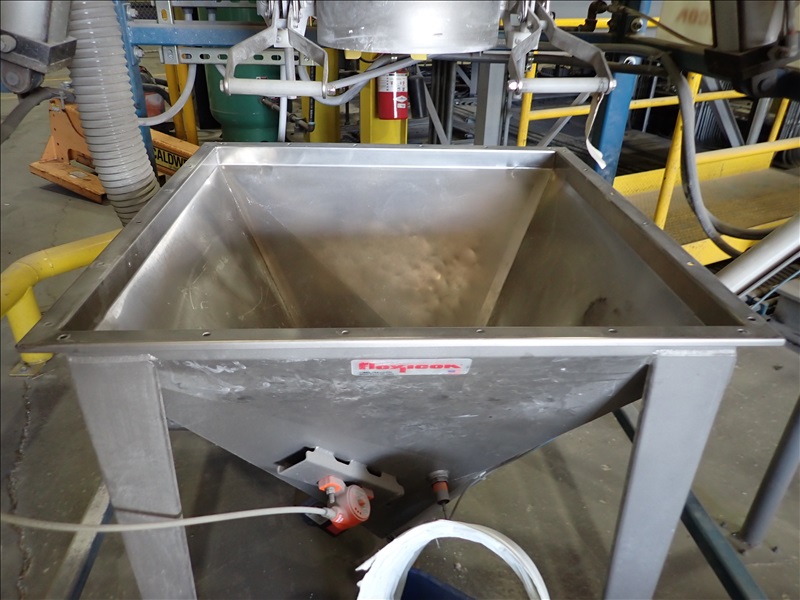 60"X60" BULK BAG UNLOADING STATION, AIR GATES, AIR RAISE/LOWER, 36"X36" S/S HOPPER, (2) SCREW AUGER INCLINE TRANSFER CONVEYORS, CONTROLS, DUST COLLECTOR