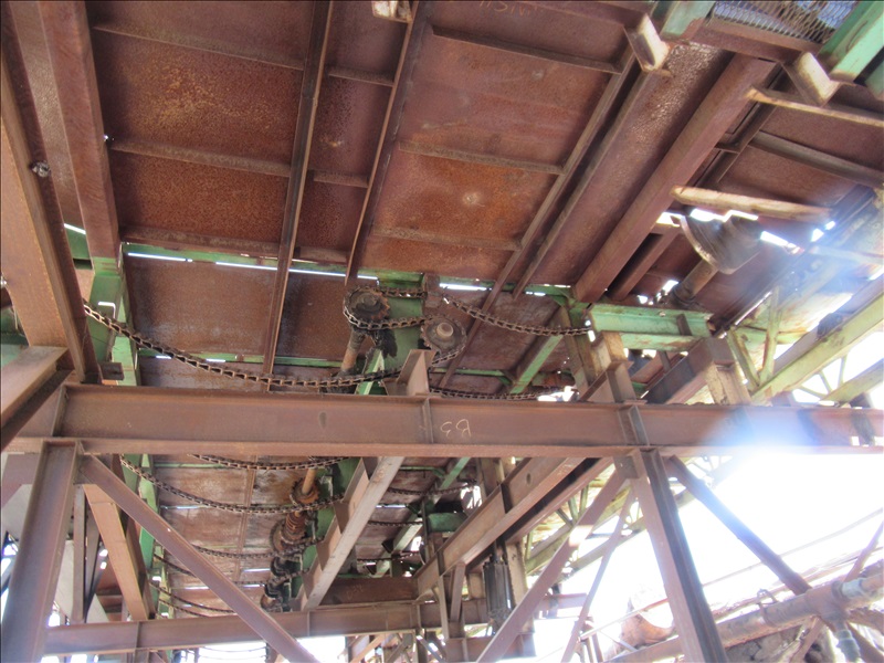 14' 10-STRAND H-CHAIN TREE LENGTH LOG DECK (CHIPPER), 8-ARM LS&L, EURODRIVE GEARHEAD MOTOR DRIVE