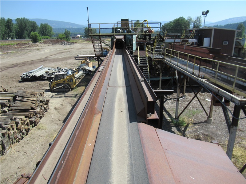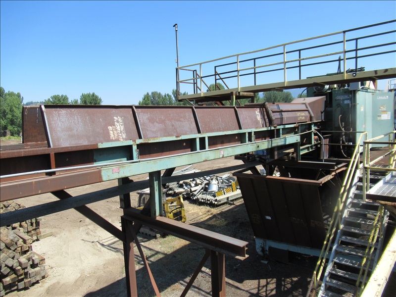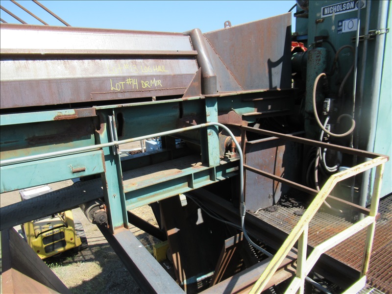 24"X120' OUTFEED BELT LOG HAUL (FROM NICHOLSON) W/(5) KICKERS, MOTOR TO REDUCER DRIVE