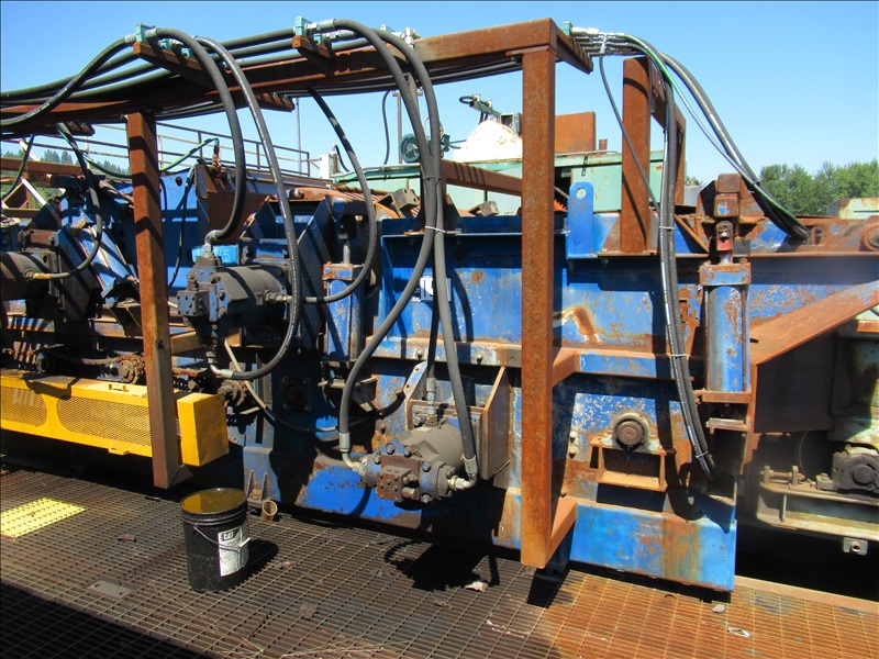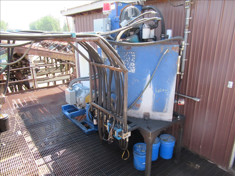 HYDRAULIC OPERATED FLAIL DEBARKER (MOUNTED ON LOG DECK), DUAL FLAIL STATIONS, POWERED FEED THRU ROLLS, 200 HP HYDRAULIC UNIT (ORIGINAL MACHINE WAS IN A FIRE, REMAINDER OF MACHINE AVAILABLE)