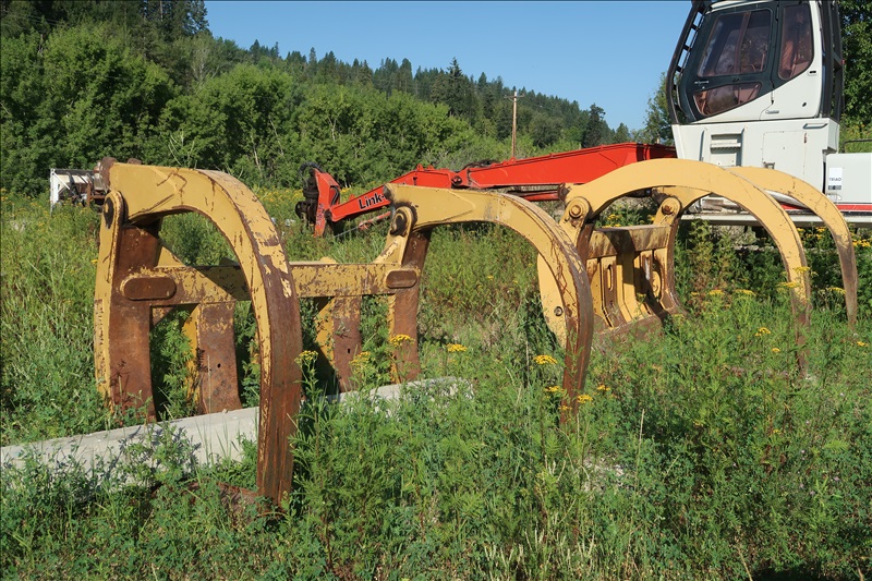 ASSORTED ATTACHMENTS TO INCLUDE (2) SETS OF KOMATSU WA500 FORKS; SLIP BUCKET; PUSH BLADE; LOG BUNKS; ASSORTED TIRES