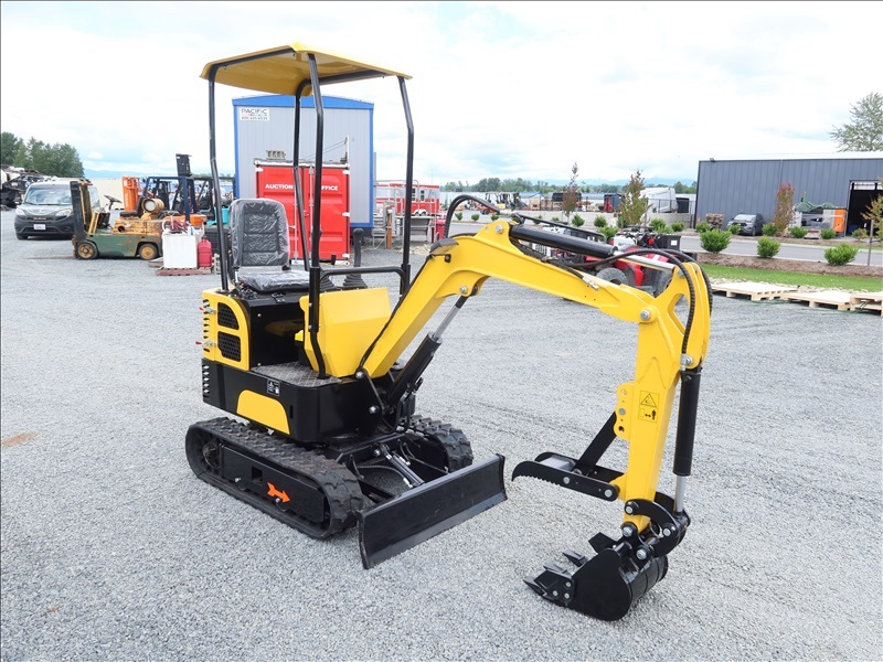 MINI EXCAVATOR, BRIGGS 7 STRATTON XR 1 CYL GAS, 13" BUCKET, THUMB, AUX HYD, BLADE, RUBBER TRACKS, CANOPY