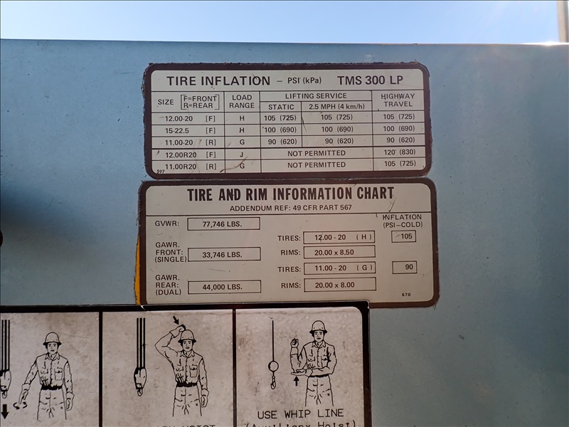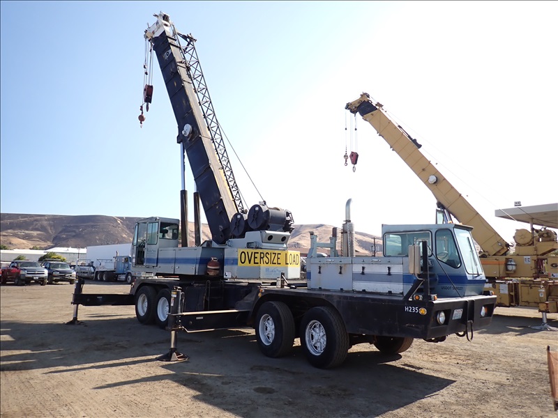 35 TON HYDRAULIC TRUCK CRANE, CUMMINS BIG CAM 350, FULLER 13 SPEED TRANSMISSION , 33’ * 80' 3 SECTION BOOM, 32' SWING AWAY JIB, 3-SHEAVE BLOCK, 6-TON HOOK BALL, AUXILARY WINCH, LSI GS550 WIRELESS BOOM ANGLE, BOOM LENGTH & LMI SYSTEM, ANTI TWO-BLOCK, 4/AXLE CARRIER, FRONT TIRE 385/65 22.5, REAR TIRES 11R 24.5,