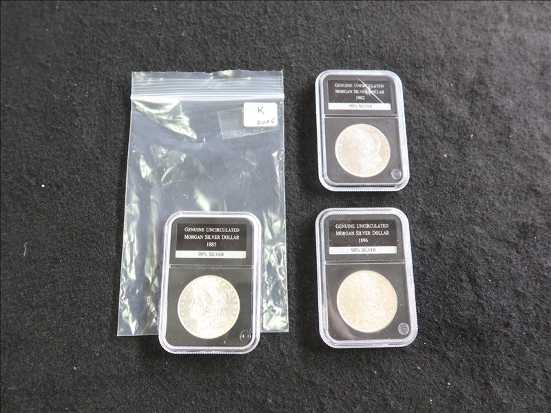 LOT, (3) ASSORTED MORGAN SILVER DOLLARS TO INCLUDE: (1) 1885, (1) 1886 & (1) 1902