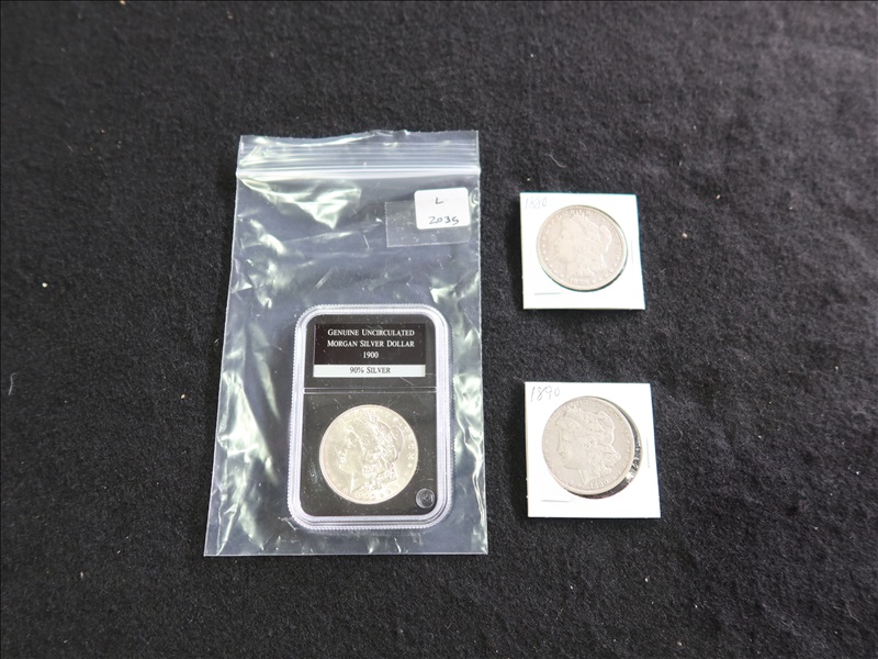 LOT, (3) ASSORTED MORGAN SILVER DOLLARS TO INCLUDE: (1) 1880, (1) 1890 & (1) 1900