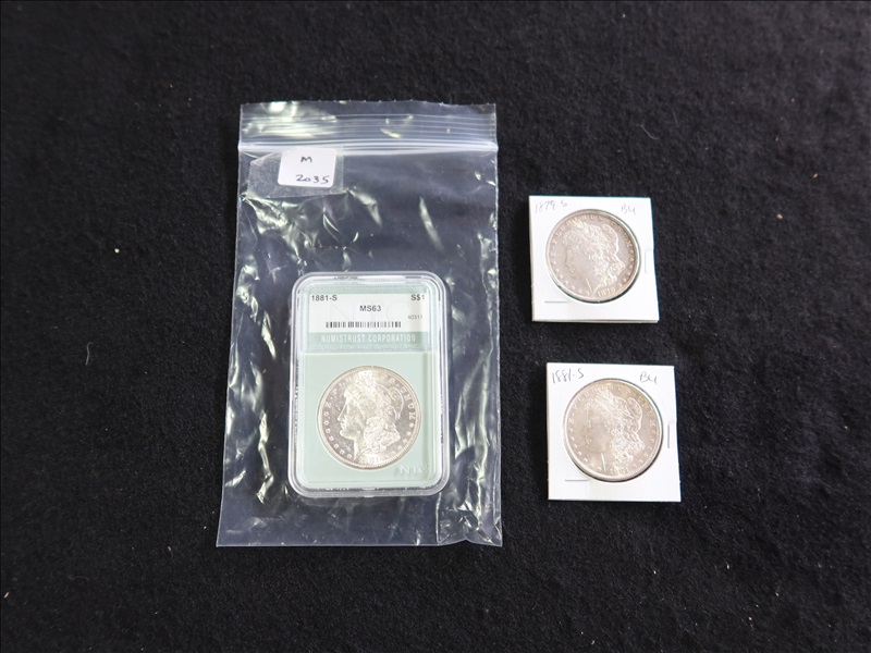 LOT, (3) ASSORTED MORGAN SILVER DOLLARS TO INCLUDE: (1) 1879S, (1) 1881S NTC M563 & (1) 1881S