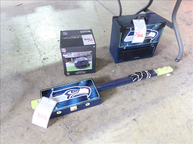 LOT, SEAHAWKS 3-STRING ELECTRIC GUITAR & AMP W/4' SEAHAWKS INFLATABLE HELMET