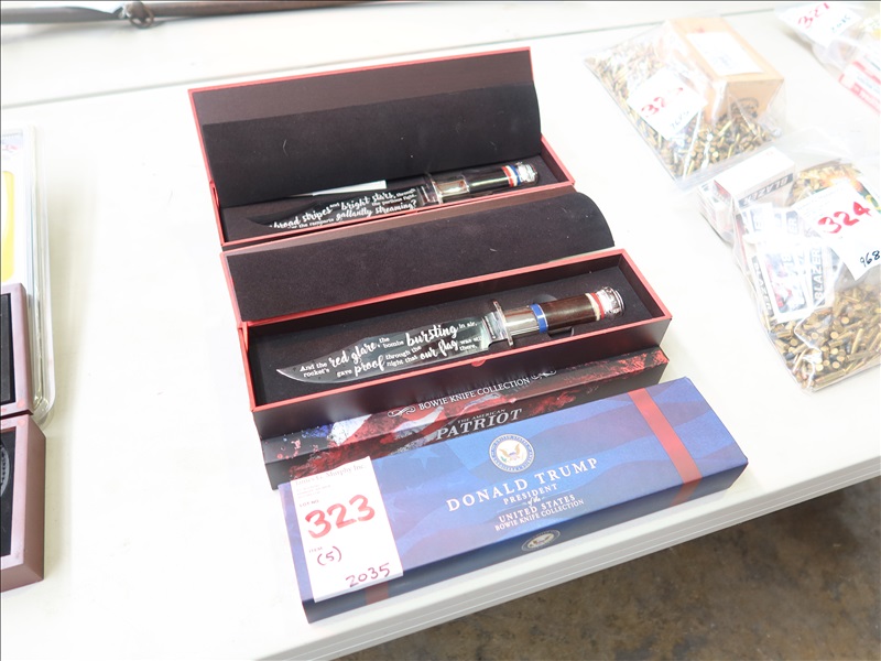 LOT, (5) AMERICAN PATRIOT & DONALD TRUMP COLLECTABLE BOWIE KNIFE COLLECTION