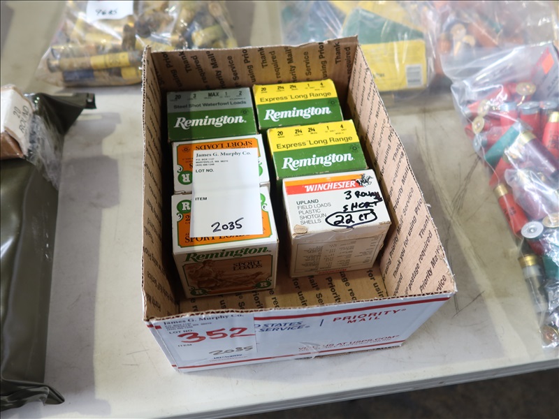 LOT, APPROX (147) ROUNDS OF 20 GAUGE SHOTGUN SHELLS IN THIS BOX