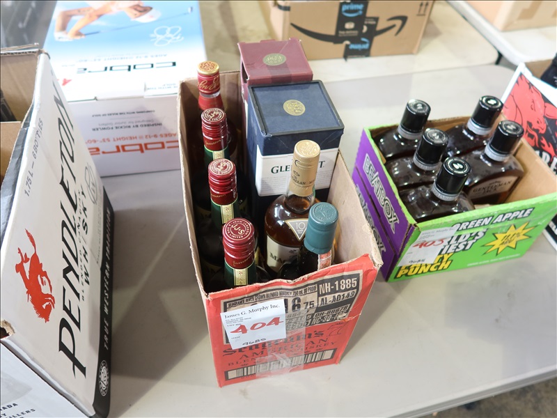 LOT, ASSORTED LIQUOR TO INCLUDE: (3) JAMESON 750 ML IRISH WHISKEY, (1) DEWAR'S 750 ML WHITE LABEL SCOTCH, (1) MACALLAN 750 ML HIGHLAND SINGLE MALT SCOTCH, (1) LAGAVULIN 750 ML SINGLE MALT & (2) THE GLENLIVET 750 ML SINGLE MALT (6,000 ML TOTAL)