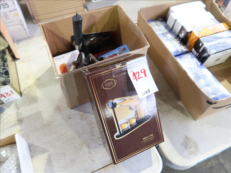 LOT, CLEAR PISTOL GUN DECANTER W/(2) BULLET SHOT GLASSES & ASSORTED TOOLS IN THIS BOX