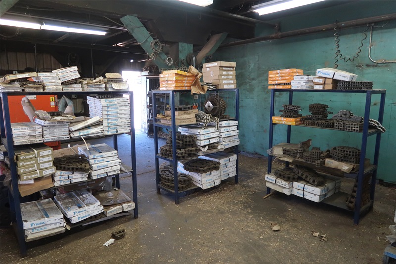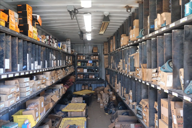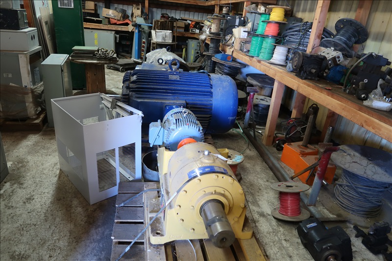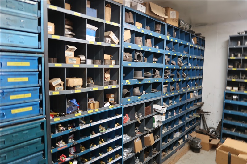 LARGE QUANTITY OF BEARINGS; SPROCKETS; COUPLERS; MILL CHAIN; BUSHINGS; BELTS; NUTS & BOLTS BINS; VALVES; AIR BAGS; PIPE FITTINGS; CYLINDERS; HYDRAULIC MOTORS & PUMPS; MACHINE PARTS; BELTING; SHAFTING; HYDRAULIC HOSE & FITTINGS; (100+) SPARE MOTORS & REDUC
