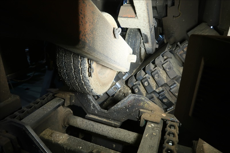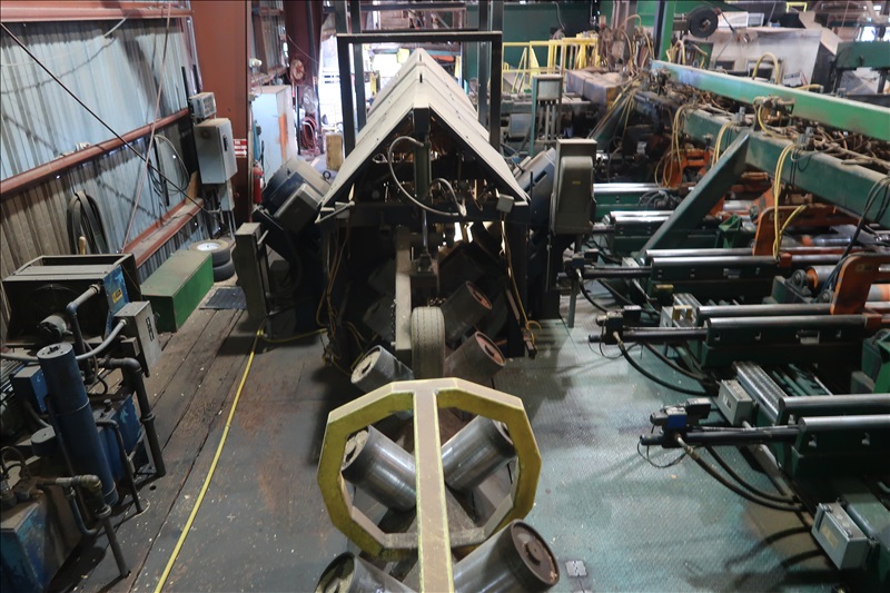90-DEGREE LOG INDEXER, (2) APPROX. 24"X20" 10-SEGMENT CHIP HEADS W/100 HP/1,200 RPM MOTORS, 8'-24' LENGTH & 6"X24" WIDTH CAPACITIES, TIRE HOLD DOWNS, BUCKHORN FEED THRU CHAIN TO VEE-ROLLS, INFEED ROLLCASE W/CHAIN LOG TURNERS, SUPPORT EQUIPMENT & SPARE PAR