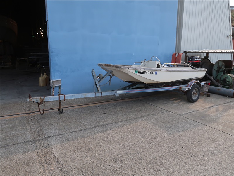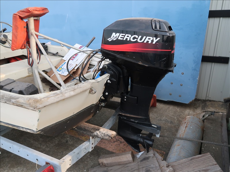 13' FIBERGLASS BOAT W/MERCURY 40 HP OUTBOARD MOTOR & TRAILER