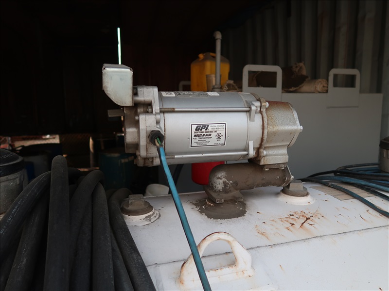 500 GALLON SKID MOUTED FUEL TANK W/GPI M-3130 FUEL TRANSFER PUMP