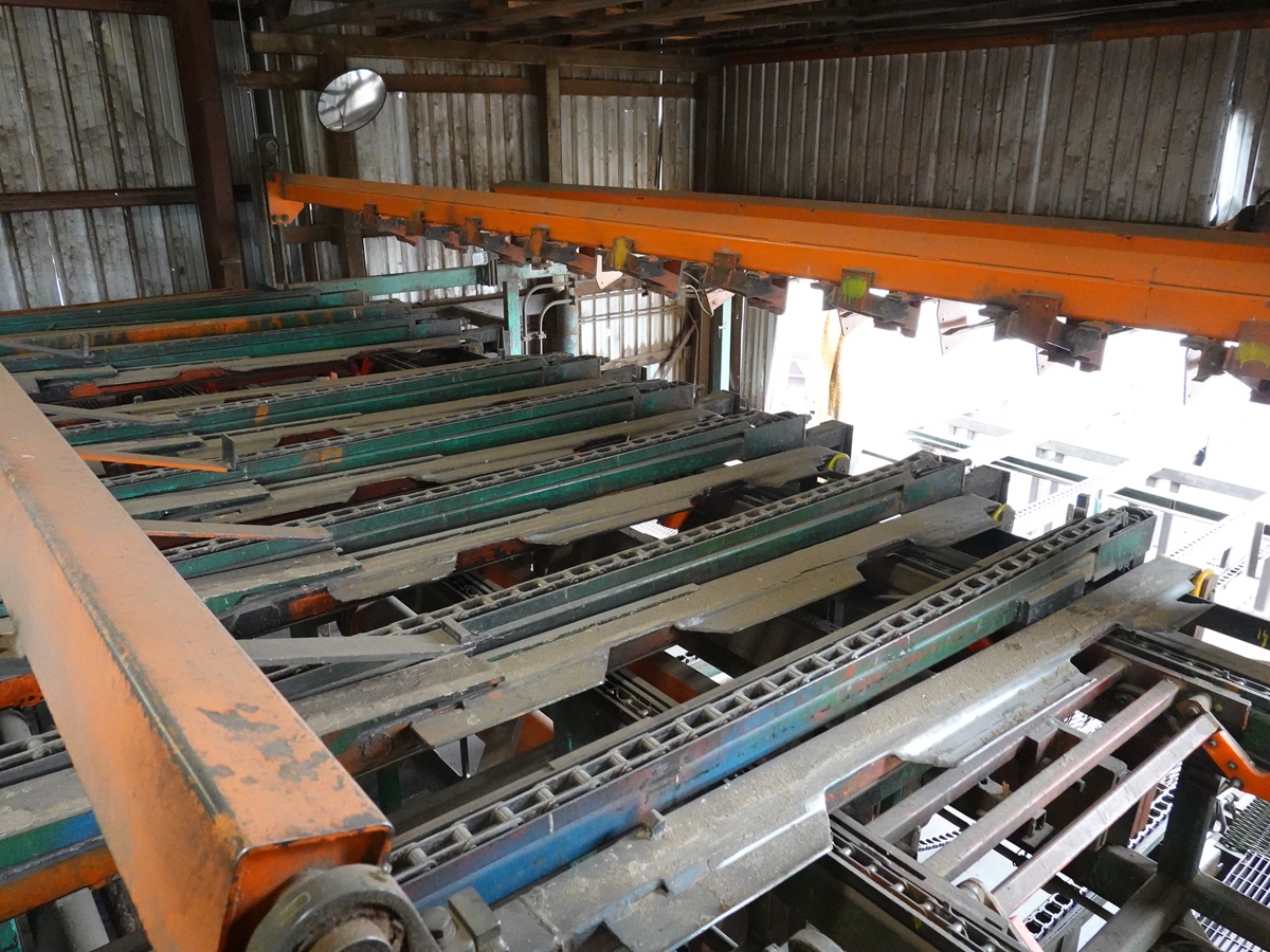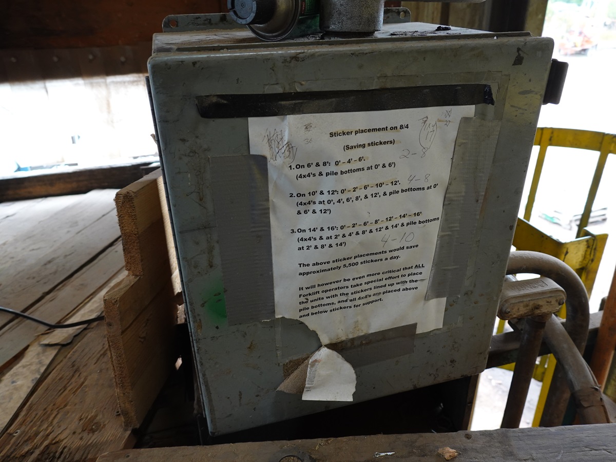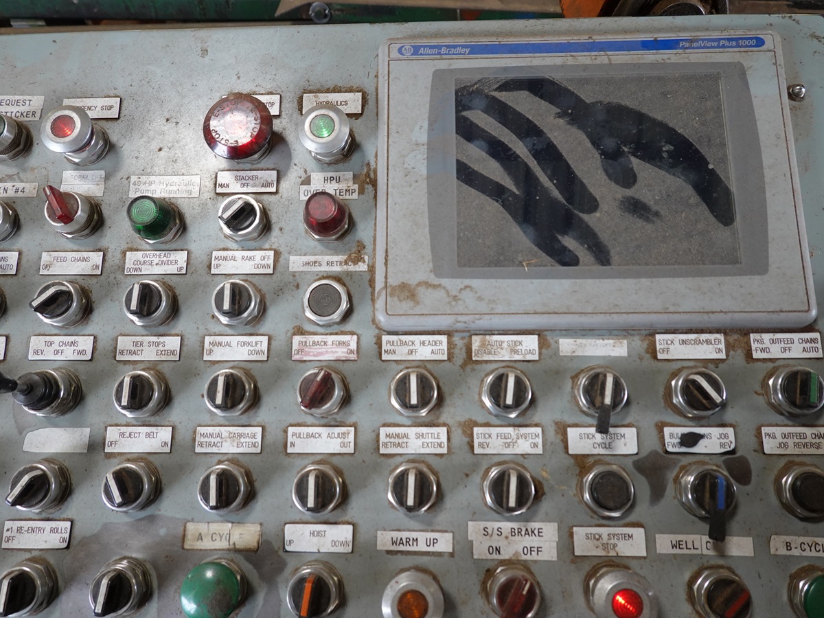 STICKER STACKER, 14' X 16' 6-STRAND INFEED CHAIN, 42" X 20' LUG FEED STICKER CHAIN