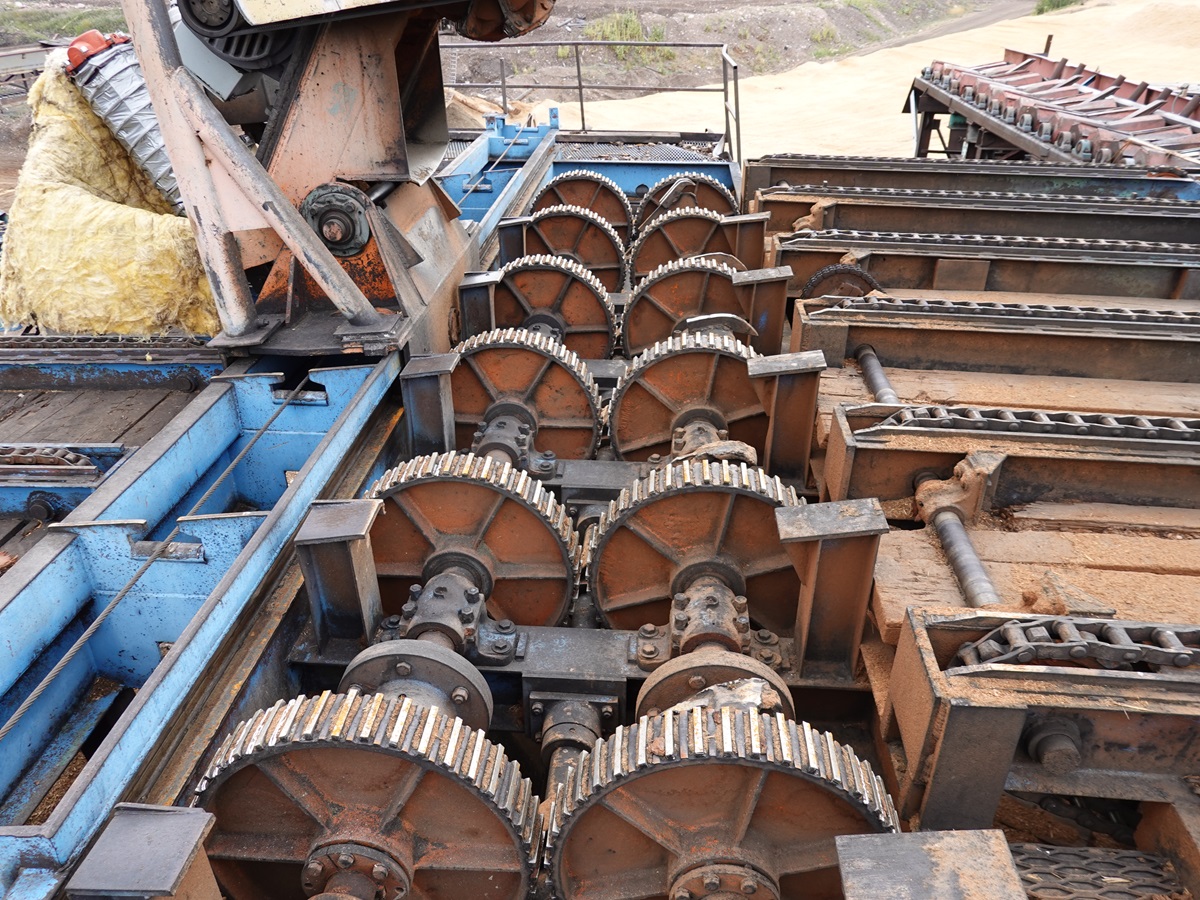DEBARKER, 25 HP TOSHIBA MOTOR, 20' TRAVEL, ELWORTHY MOTOR, RADICON GEAR BOX, 18' LOG POSITIONER ROLLS
