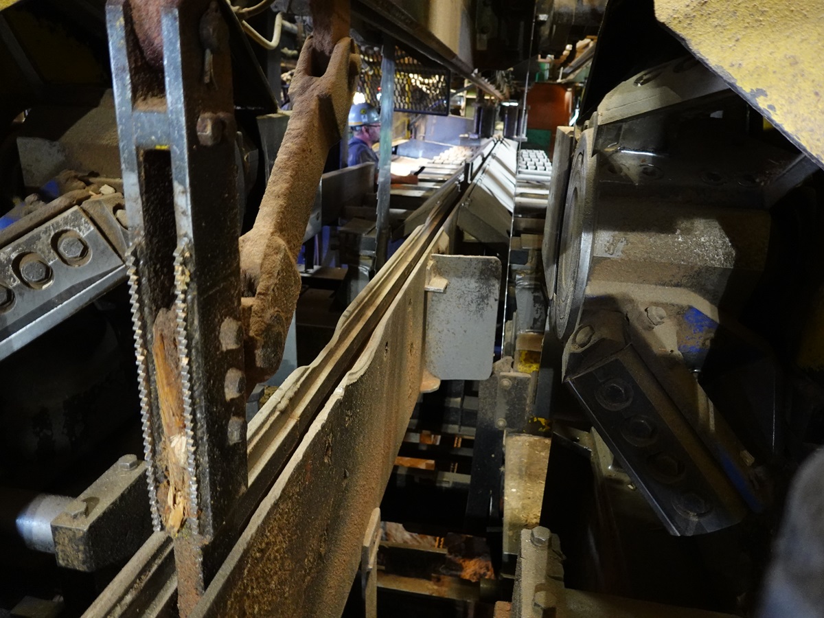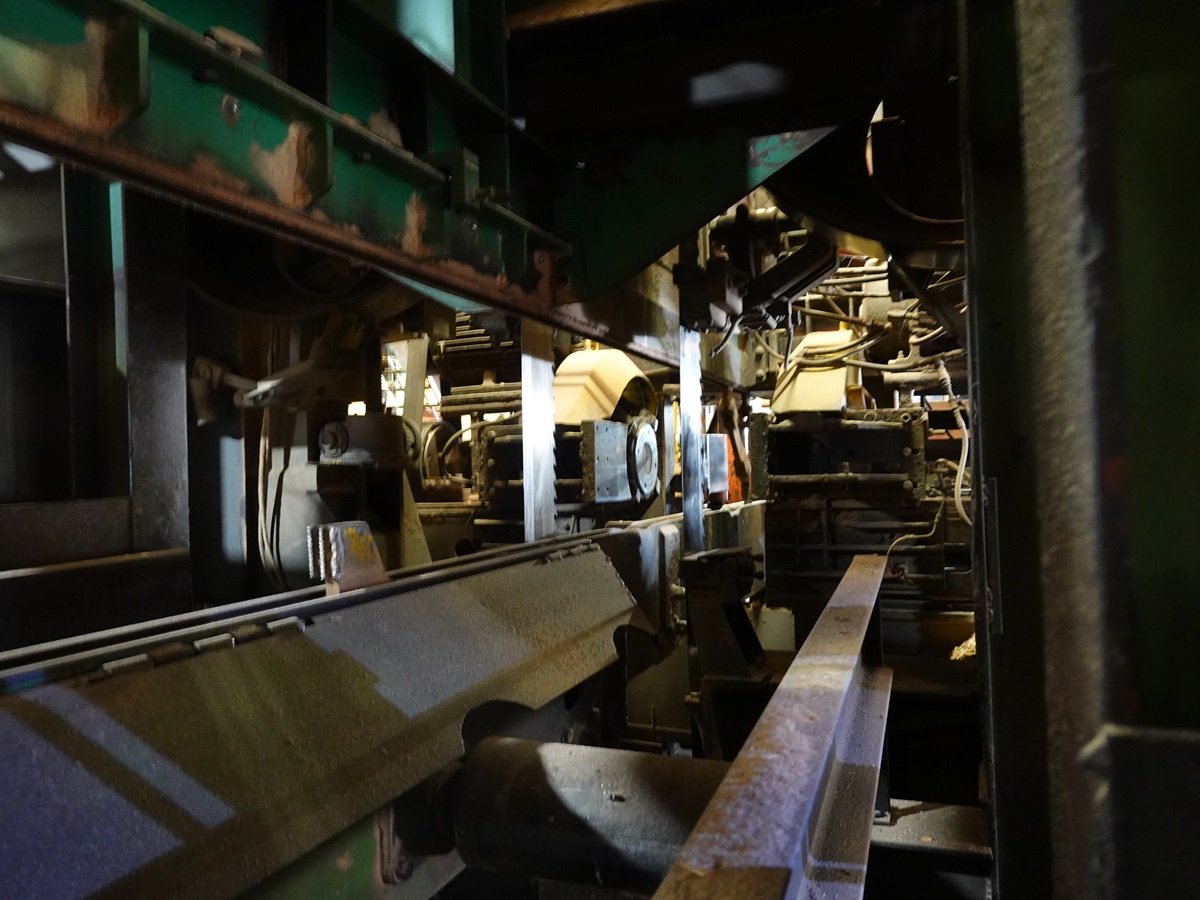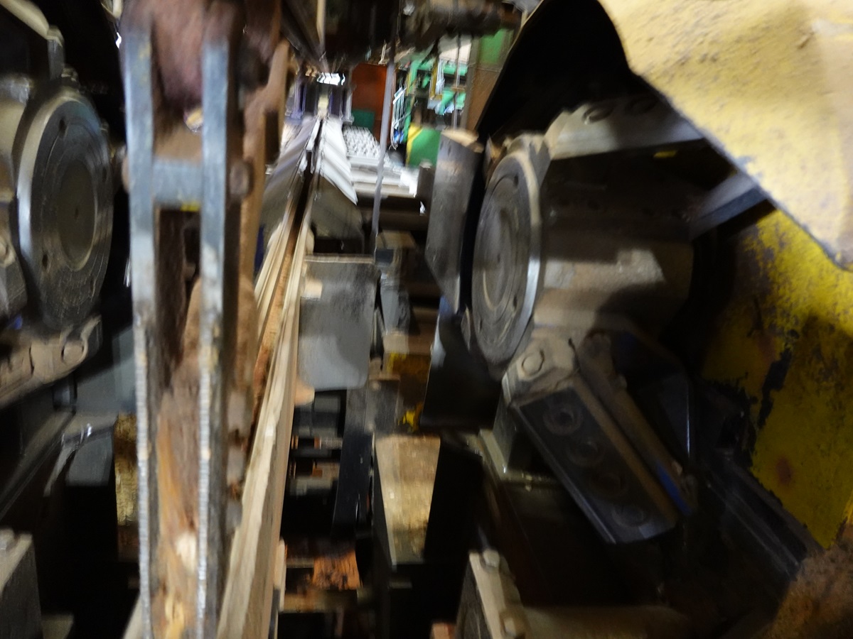 TEMPOSONIC POSITIONED VERTICAL TWIN BANDMILL, GE 125 HP MOTOR, RIGHT SLABBER,LEFT SAW, 124 HP MOTOR, LEFT SLABBER 100 HP