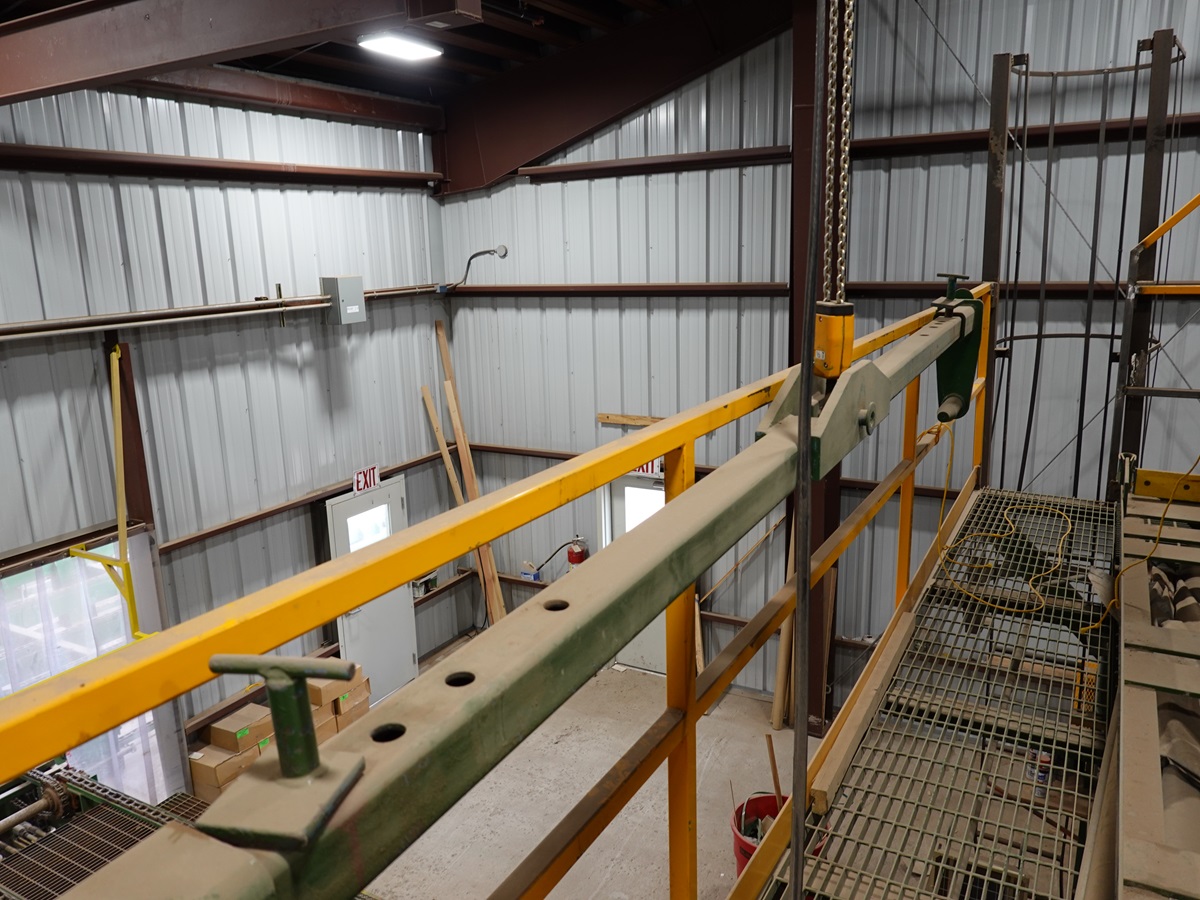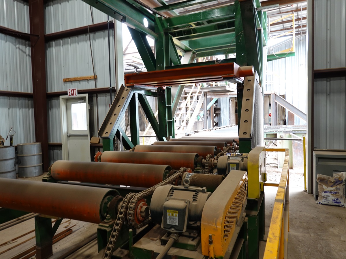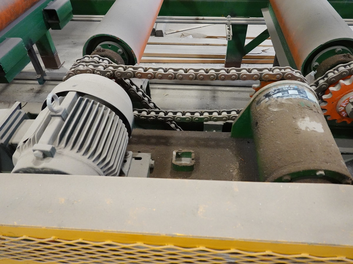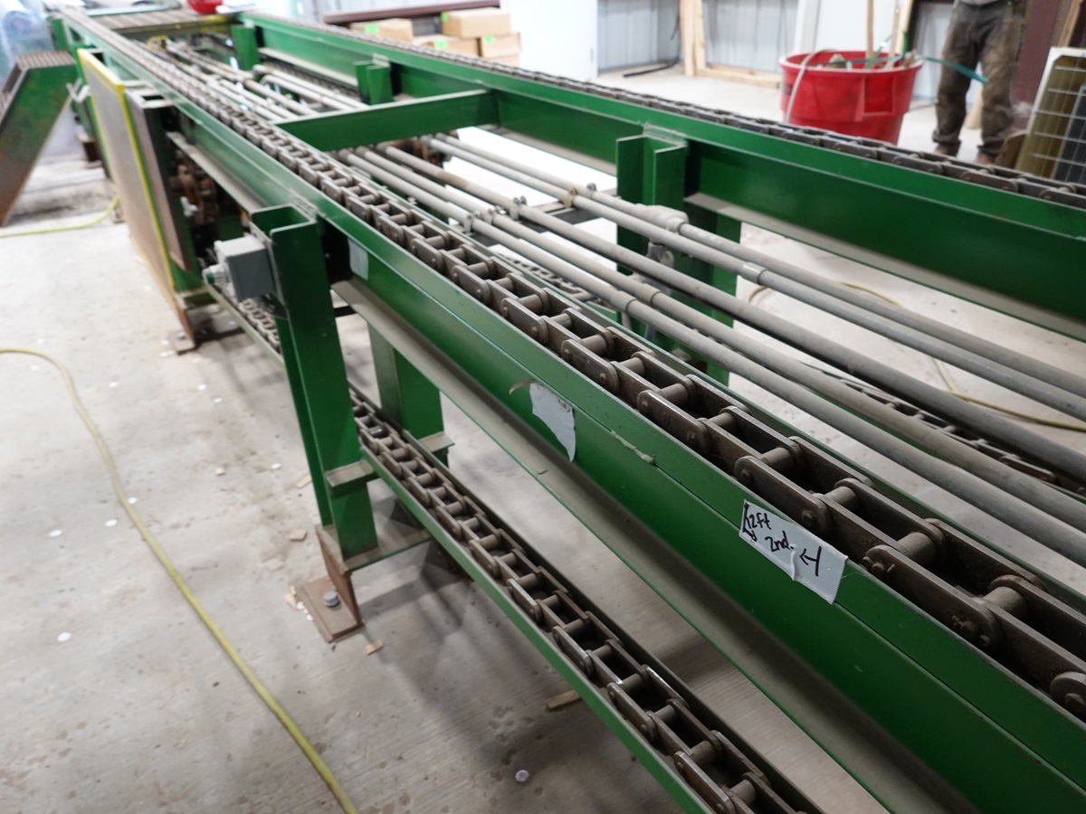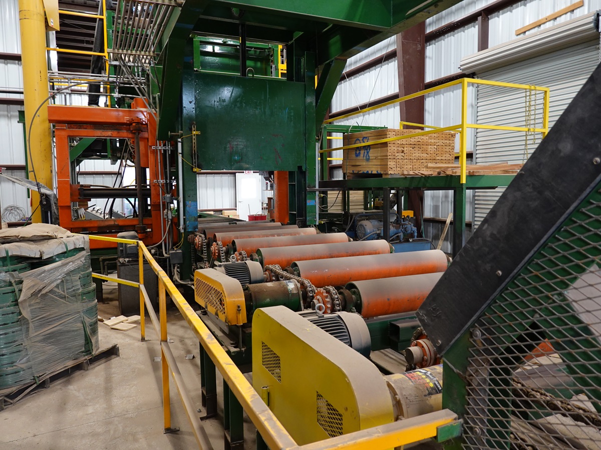 LUMBER STRAP & PAPER WRAP SYSTEM, 30' X 54" INFEED ROLLCASE W/(2) TOSHIBA 5 HP MOTORS, (2) REXNORD DRIVES, 64"W X 54"H BUMP PLATE W/7.5 HP HYDRAULIC SYSTEM, BALDOR 15 HP HYDRAULIC SYSTEM FOR BANDING UNIT, STICKER STACKER, AUTOMATION DIRECT DIGITAL TOUCH SCREEN CONTROLS, OVERHEAD PAPER FEEDER/LOADER WITH CUTTER HEAD, 42' X 38" 2-STRAND OUTFEED, TOSHIBA 10 HP MOTOR W/REXNORD DRIVE, 480V, 3 PHASE