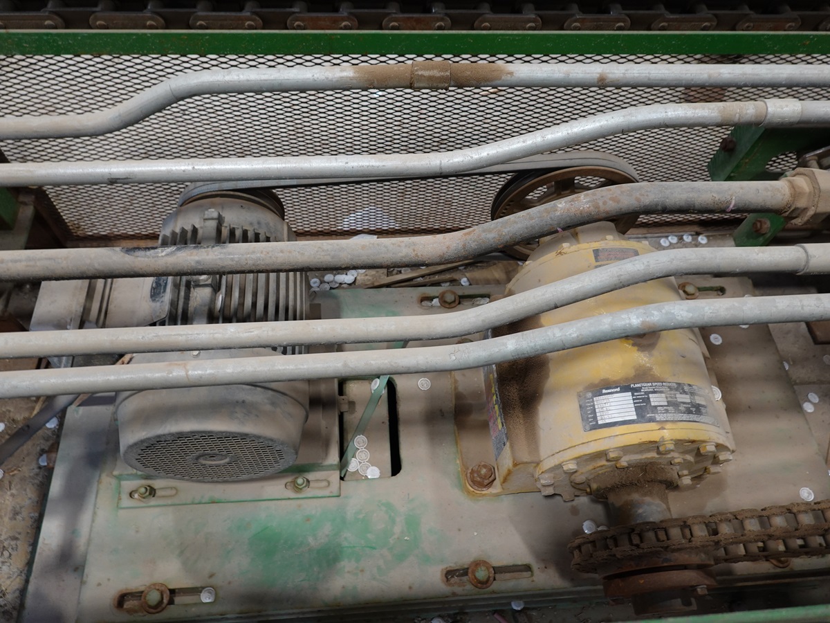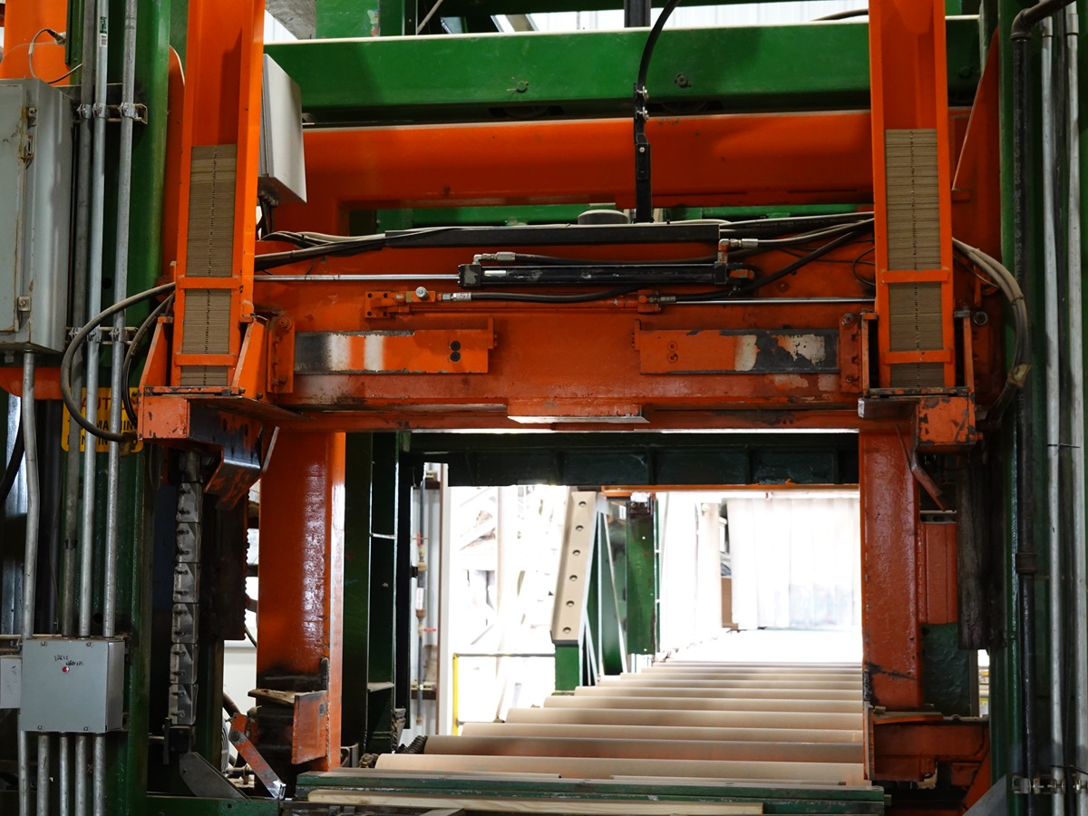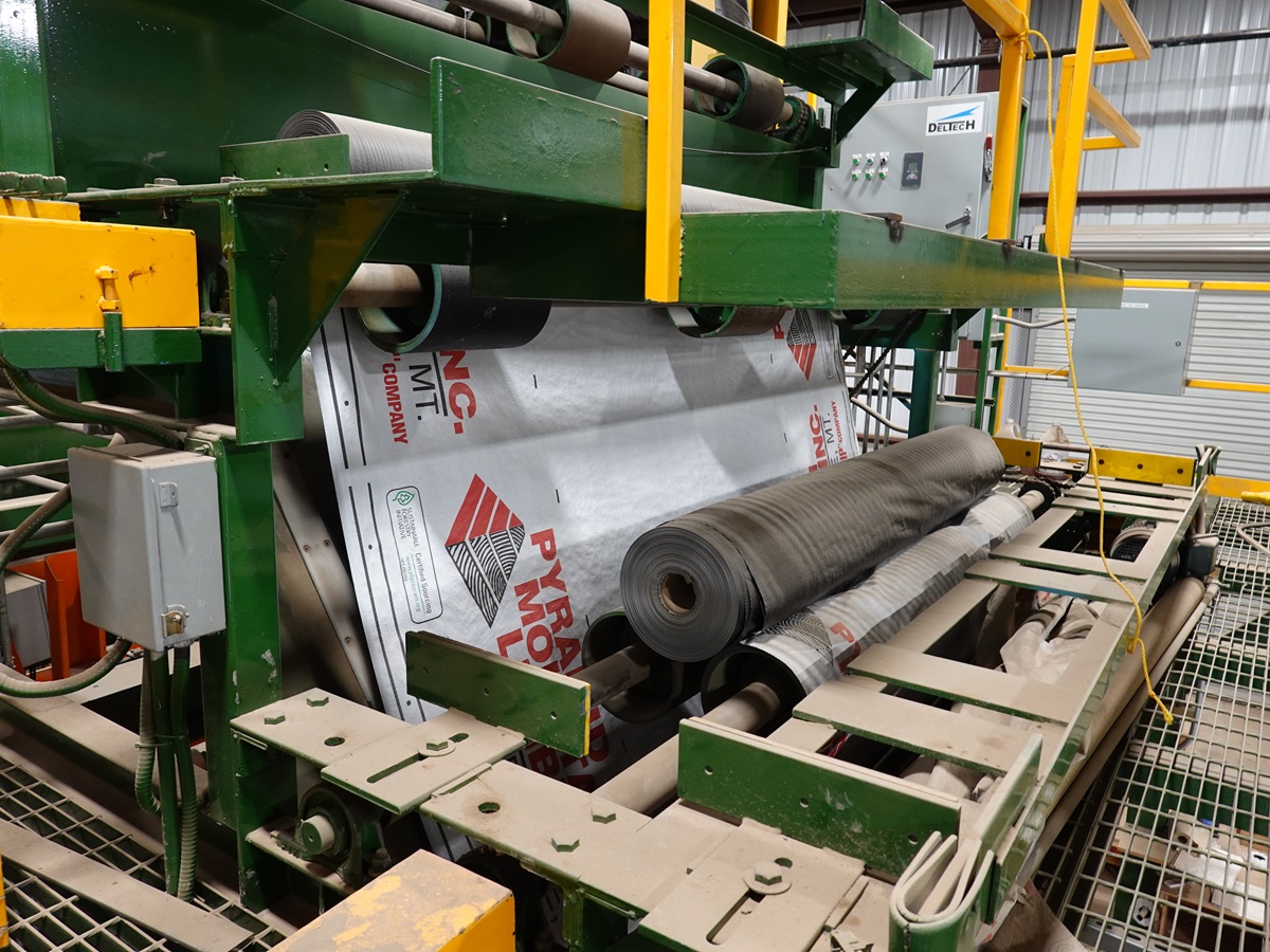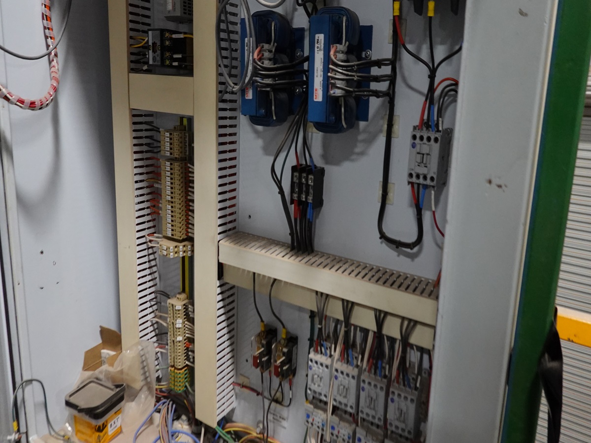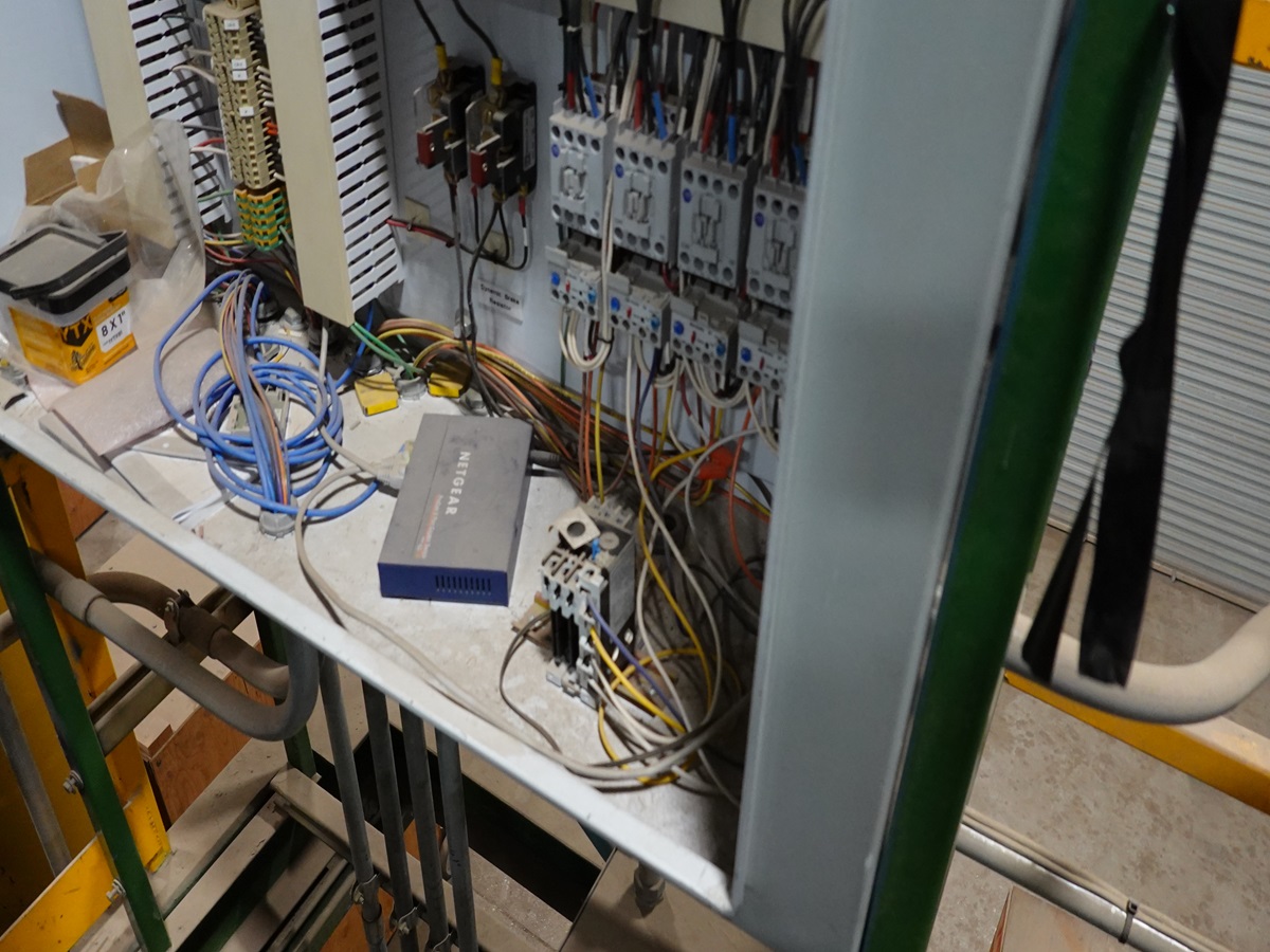 LUMBER STRAP & PAPER WRAP SYSTEM, 30' X 54" INFEED ROLLCASE W/(2) TOSHIBA 5 HP MOTORS, (2) REXNORD DRIVES, 64"W X 54"H BUMP PLATE W/7.5 HP HYDRAULIC SYSTEM, BALDOR 15 HP HYDRAULIC SYSTEM FOR BANDING UNIT, STICKER STACKER, AUTOMATION DIRECT DIGITAL TOUCH SCREEN CONTROLS, OVERHEAD PAPER FEEDER/LOADER WITH CUTTER HEAD, 42' X 38" 2-STRAND OUTFEED, TOSHIBA 10 HP MOTOR W/REXNORD DRIVE, 480V, 3 PHASE