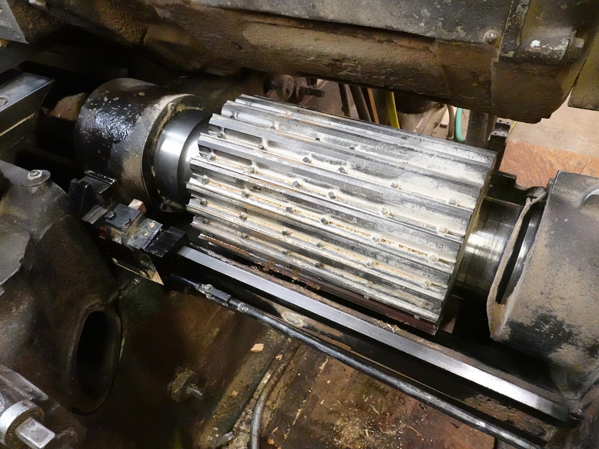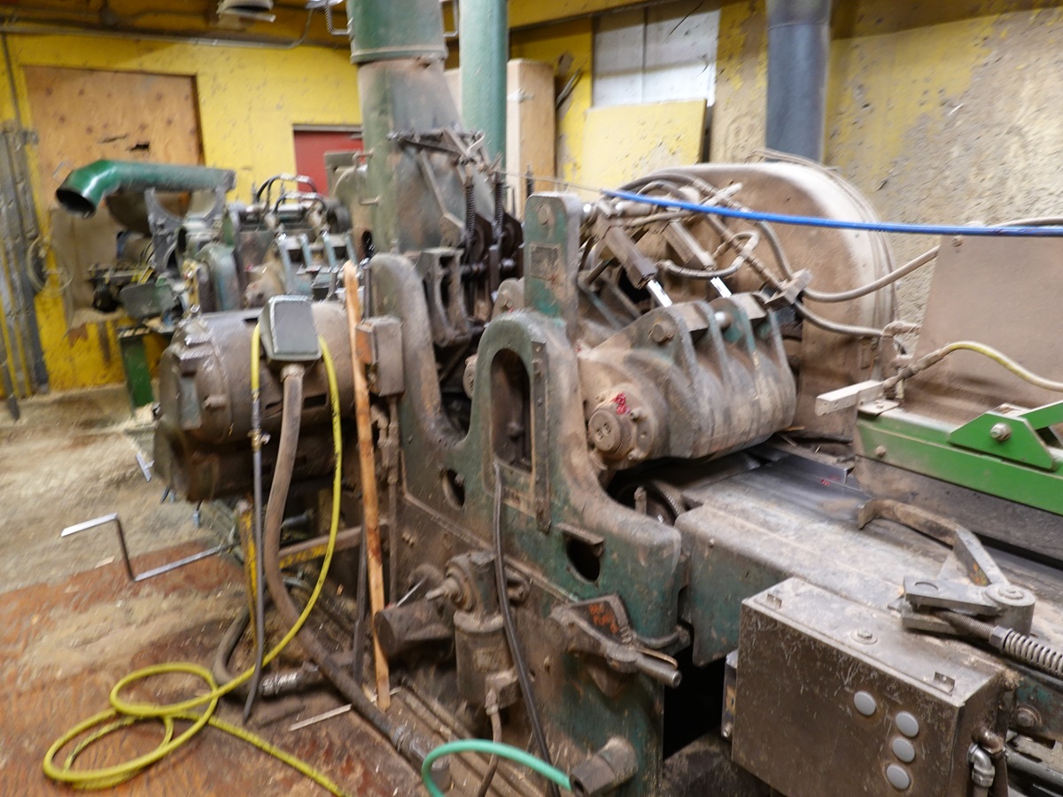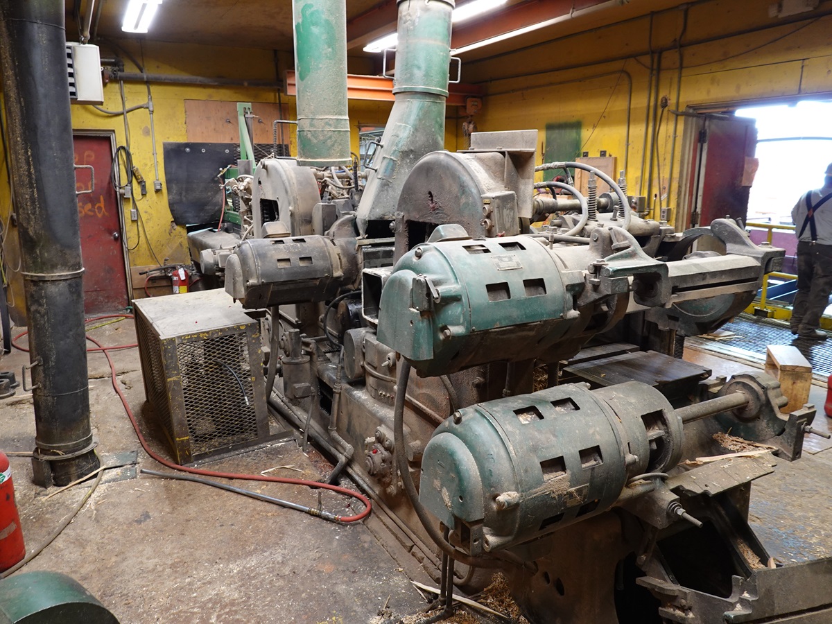 A63 PLANER MATCHER, 8”X15”, 6-HEAD, 22-KNIFE W/KEY KNIFE CONVERSION, 150 HP TOP/75 HP BOTOTM, 35 HP & 50 HP SIDE HEADS, 50 HP NOTCHERR HEADS, APPROX. 20’ DUAL PINEAPPLE FEED ROLL TABLE, WOLFTEK CONVERSION, LIVE BRIDGE, OUTFEED BELT TO 48”X120” SLOW DOWN BELT, NUMEROUS SPARE HEADS & PARTS