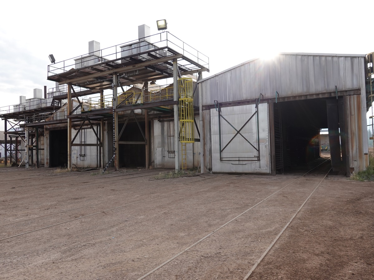 APPROX 150'X80' DOUBLE TRACK ALUMINUM STEAM FIRED KILN W/DOUBLE TRACK KILN RAILS, COOLING SHED