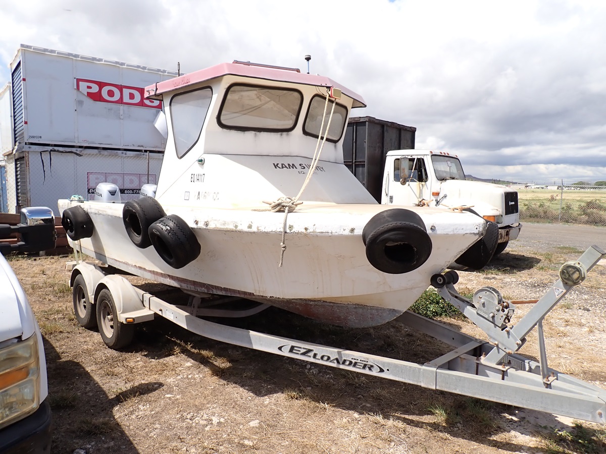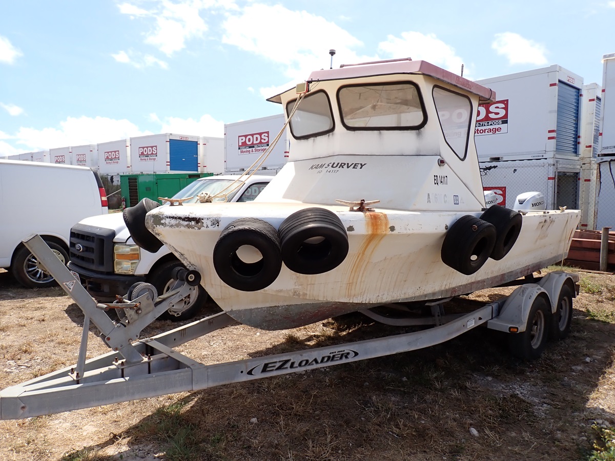 19' FIBEGLASS SURVEY BOAT, (2) HONDA 40HP OUTBOARDS, EZ LOADER T/A TRAILER
